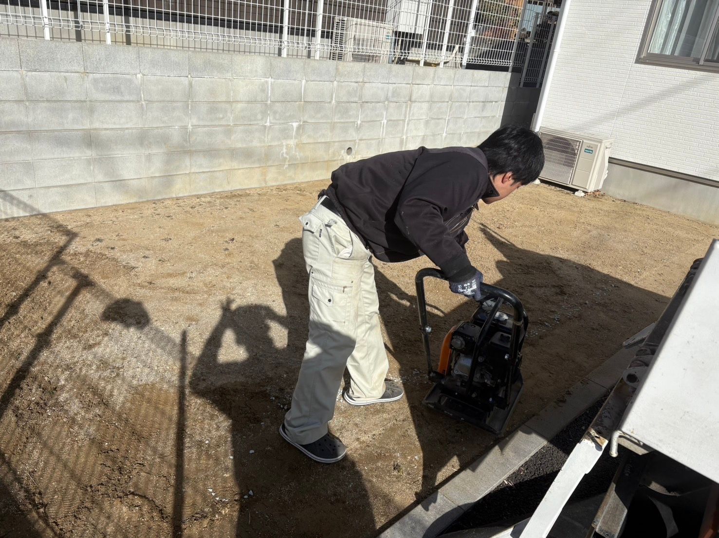 今回は 転圧 → 人工芝施工 の流れです。