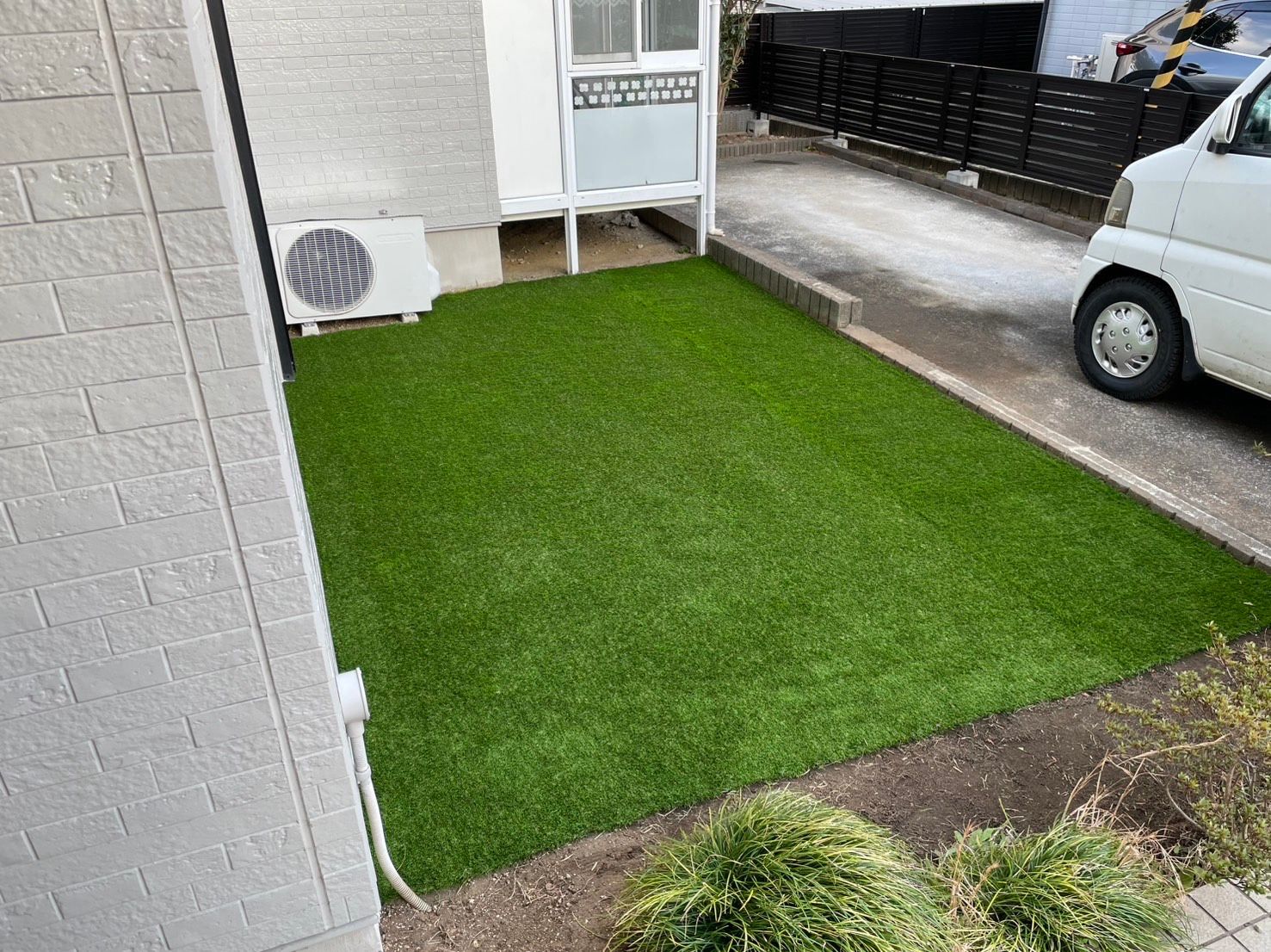 そんなお悩みのスペースを、人工芝でキレイに整えました🌿
