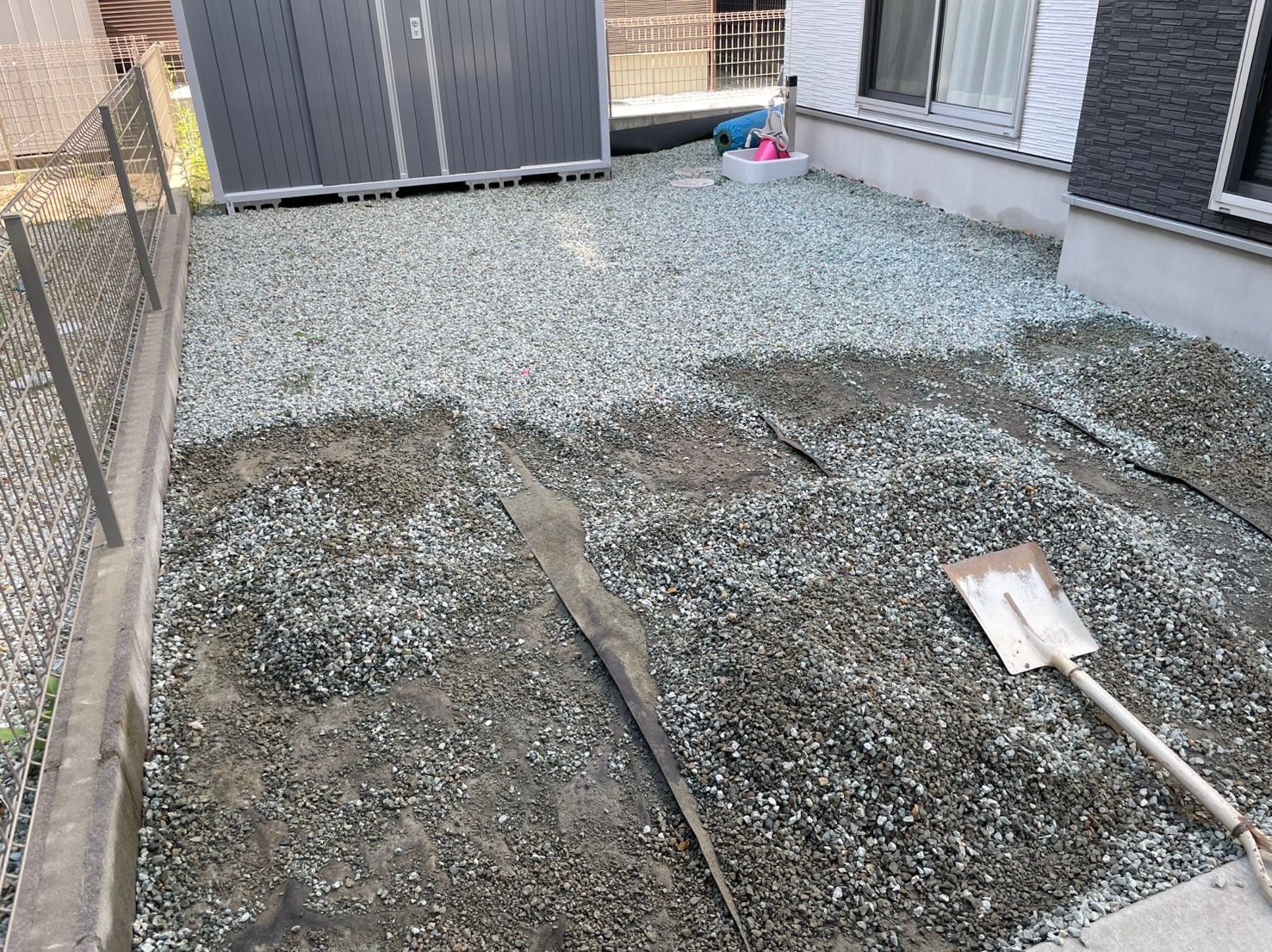 今回ご依頼いただいたのは、砂利のお庭を人工芝にリフォームしたいというお客様。