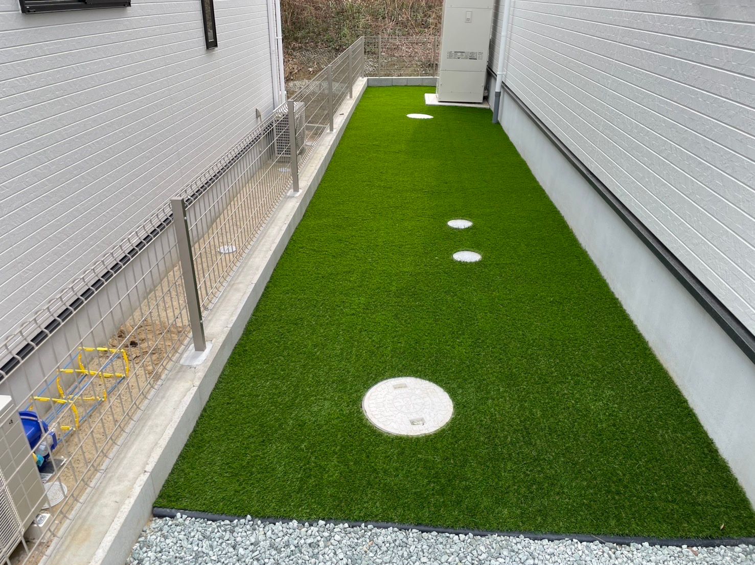 今回は防草対策も兼ねて、人工芝を施工させていただきました!
