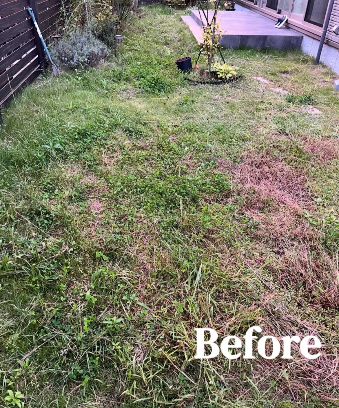 お庭一面に雑草が生い茂り、せっかくのスペースも活用できずお困りだったお客様。
