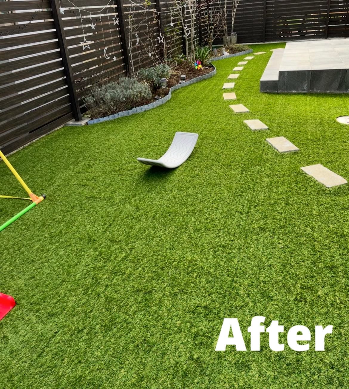 施工後は、鮮やかな人工芝で一年中きれいなお庭に大変身!