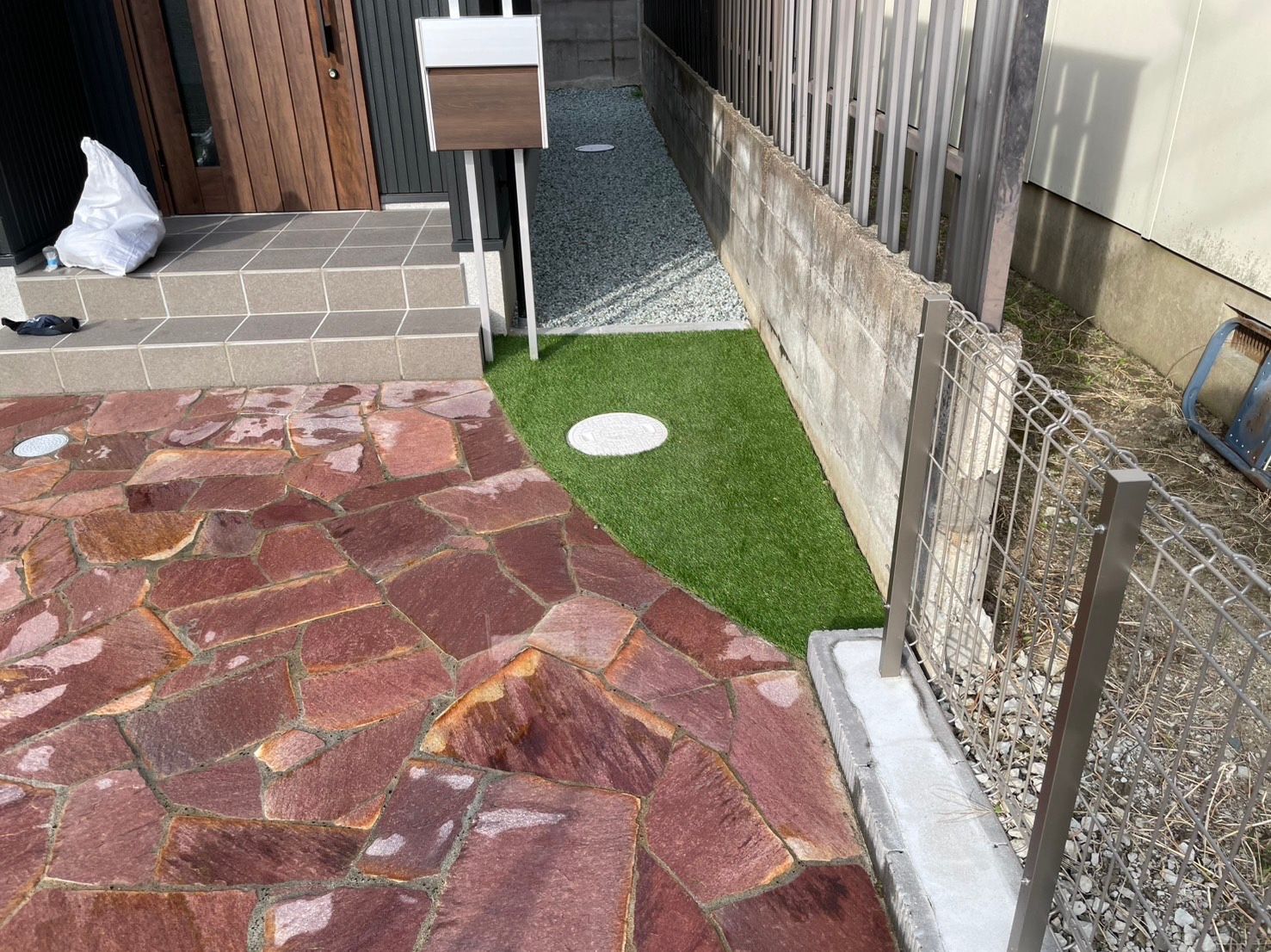 防草シート+人工芝施工で、メンテナンスフリーのお庭に生まれ変わりました✨