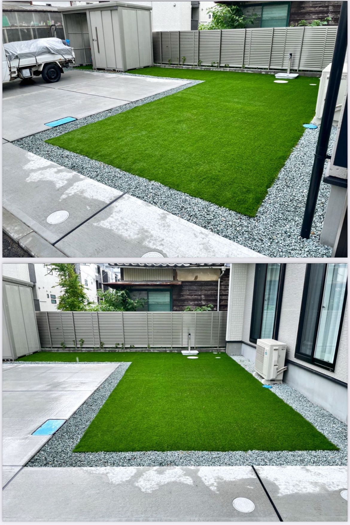 今回は、お庭スペースに人工芝を施工させていただいた事例のご紹介です。
