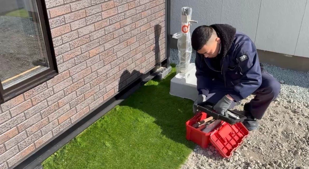 立水栓の設置後、まわりを人工芝で仕上げました。・足元がぬかるみにくい・見た目がスッキリ・雑草対策にも◎ちょっとしたスペースですが、仕上がりの印象が大きく変わります✨人工芝だけでなく、砂利・平板・立水栓まわりの施工も対応可能です。お気軽にご相談ください😊