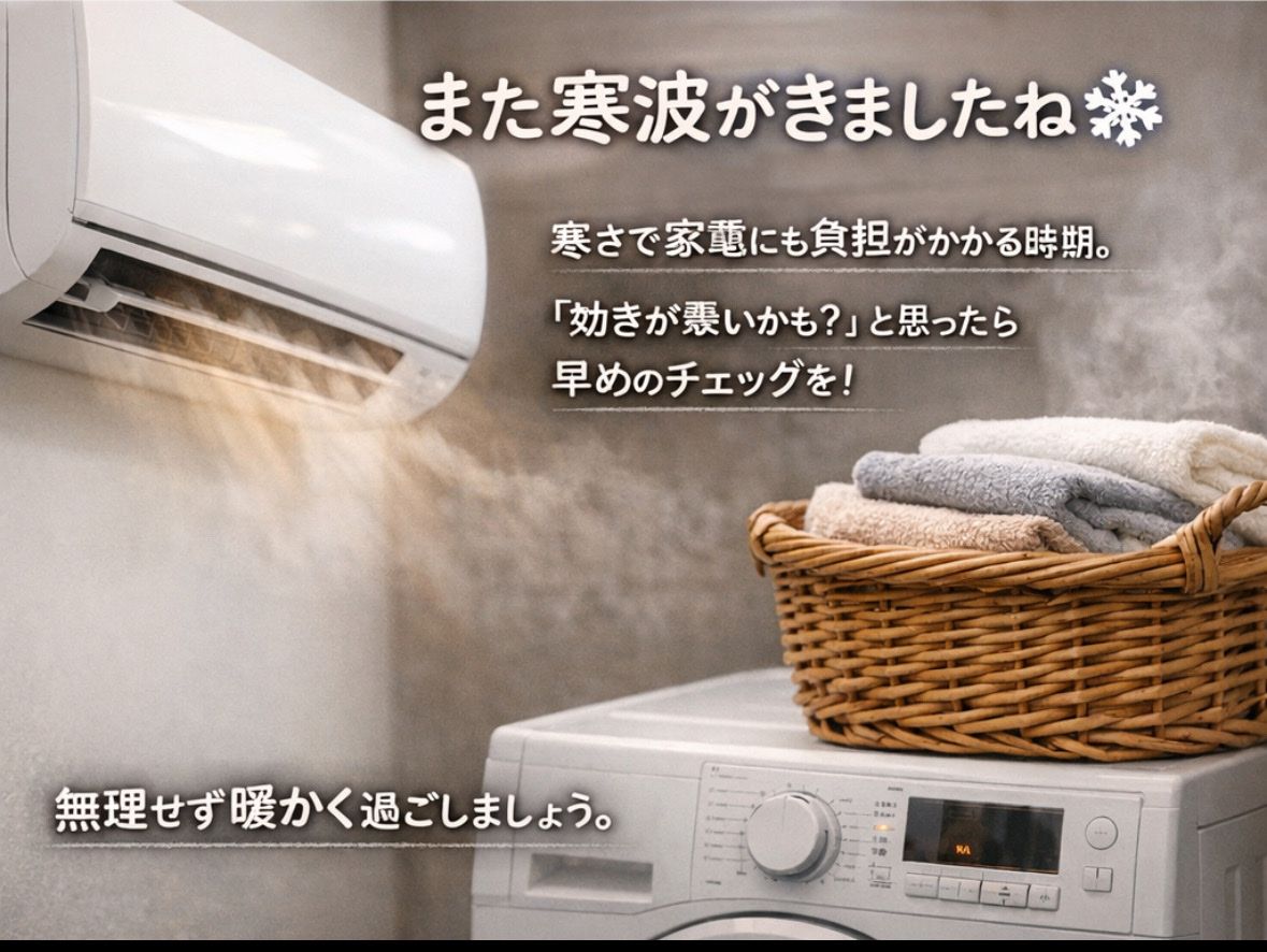 寒さが厳しくなると、エアコンや洗濯機など家電への負担も大きくなります。