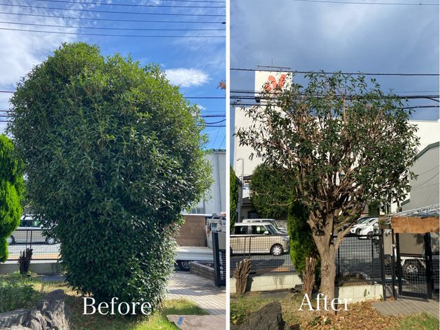 こんにちは!今回は自宅前にあった大きな木の剪定作業の前後を紹介します。以前は、茂った木によって家がほとんど見えないほどだったので...