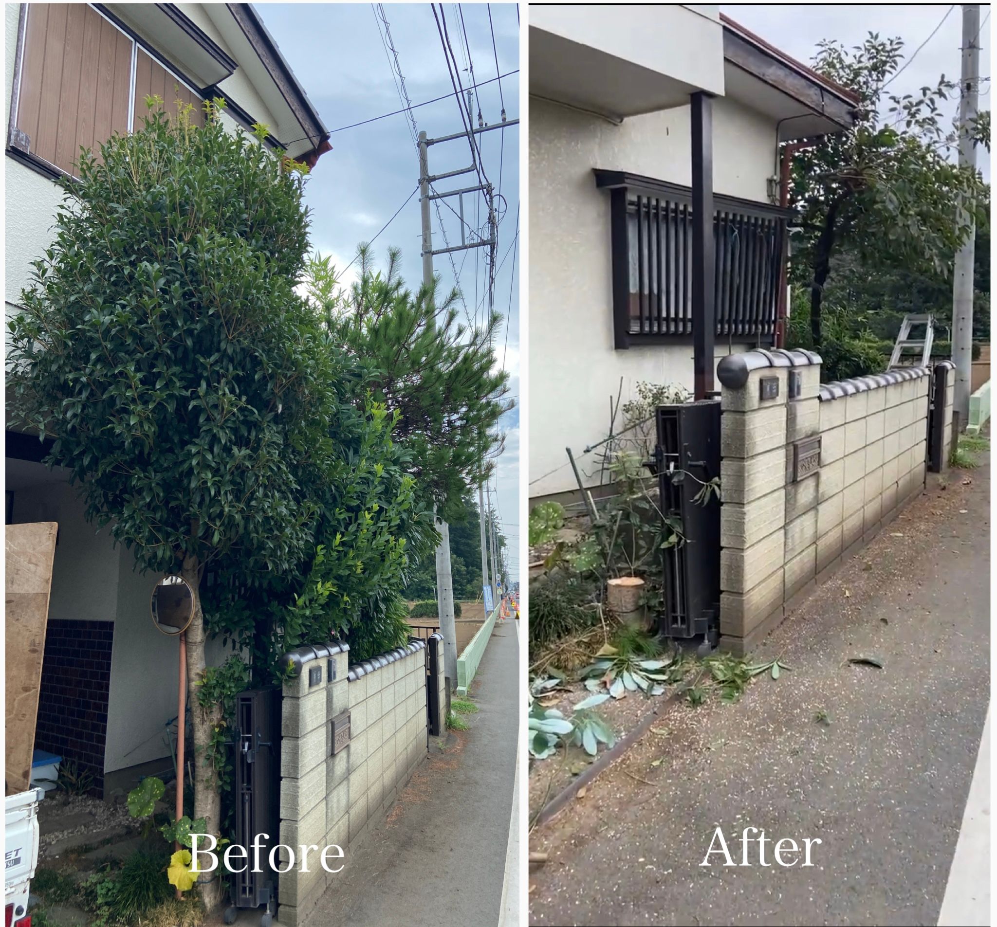 新所沢駅近くで「道路にはみ出した庭木を整理してほしい」とご依頼いただきました。伸びすぎた庭木を伐採し、玄関周りや塀沿いをスッキリ整備。外観が明るくなり、通行の安全性もアップしました。大きくなった木は放置するとご近所へのご迷惑や防犯面にも影響することがあります。伐採・剪定で見通しを良くすることで、お庭が快適に生まれ変わります。当店は 見積もり無料・即日対応可能。川越市・ふじみ野市・新所沢・東松山・練馬・さいたま市など幅広いエリアで実績多数!「木が大きくなりすぎて困っている」そんな時はぜひお気軽にご相談ください。