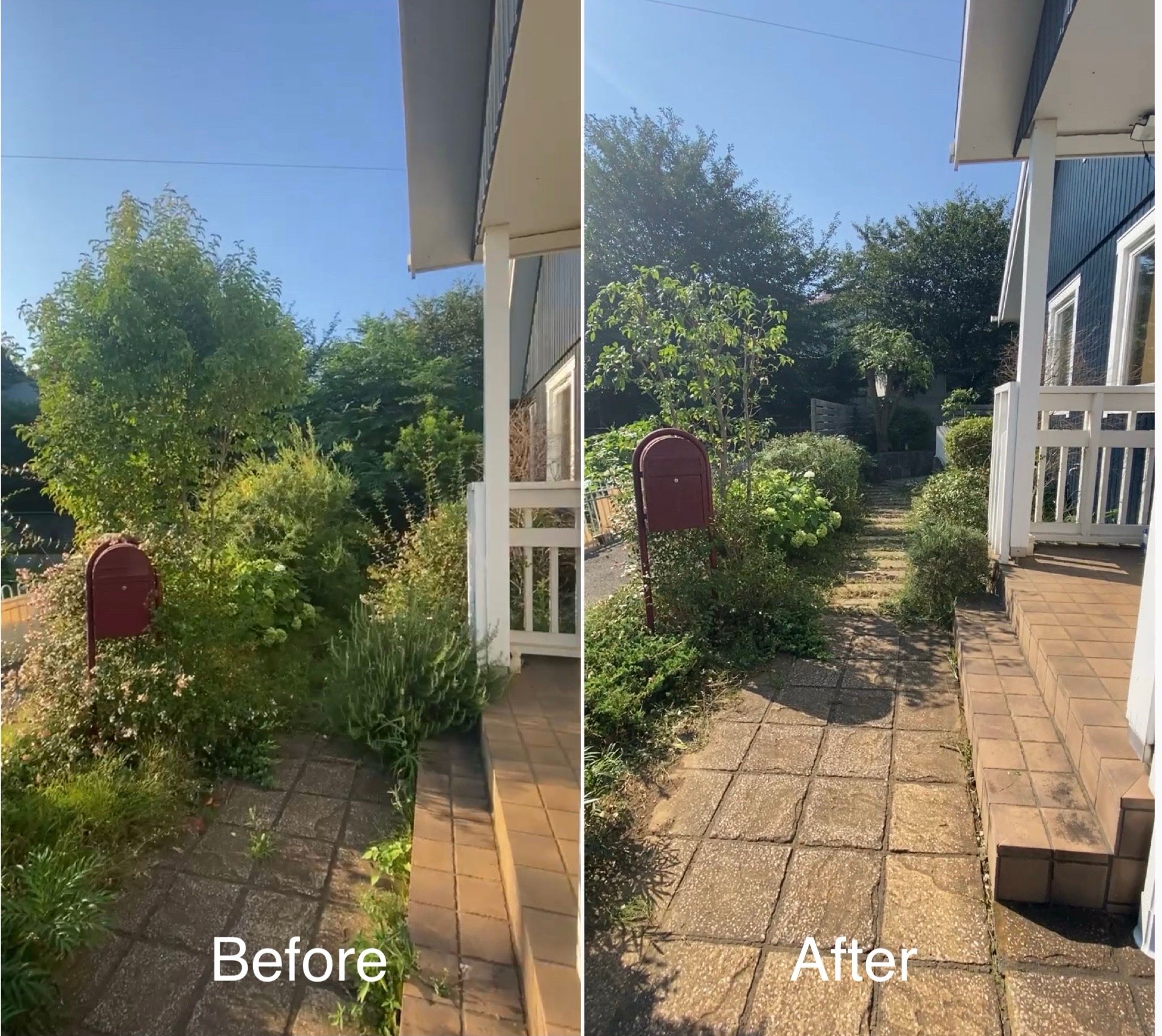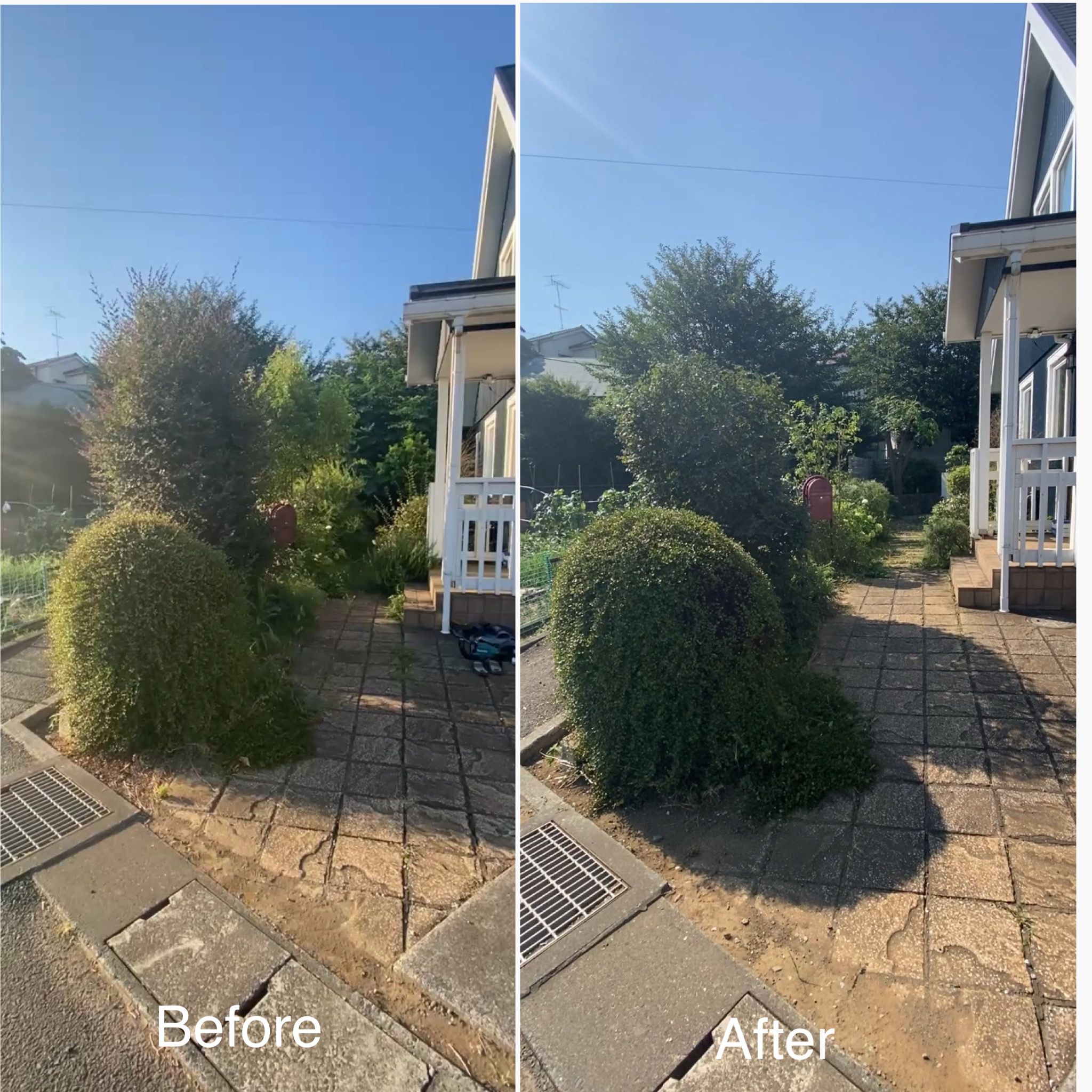 玄関アプローチが生まれ変わる!スッキリ剪定ビフォーアフター