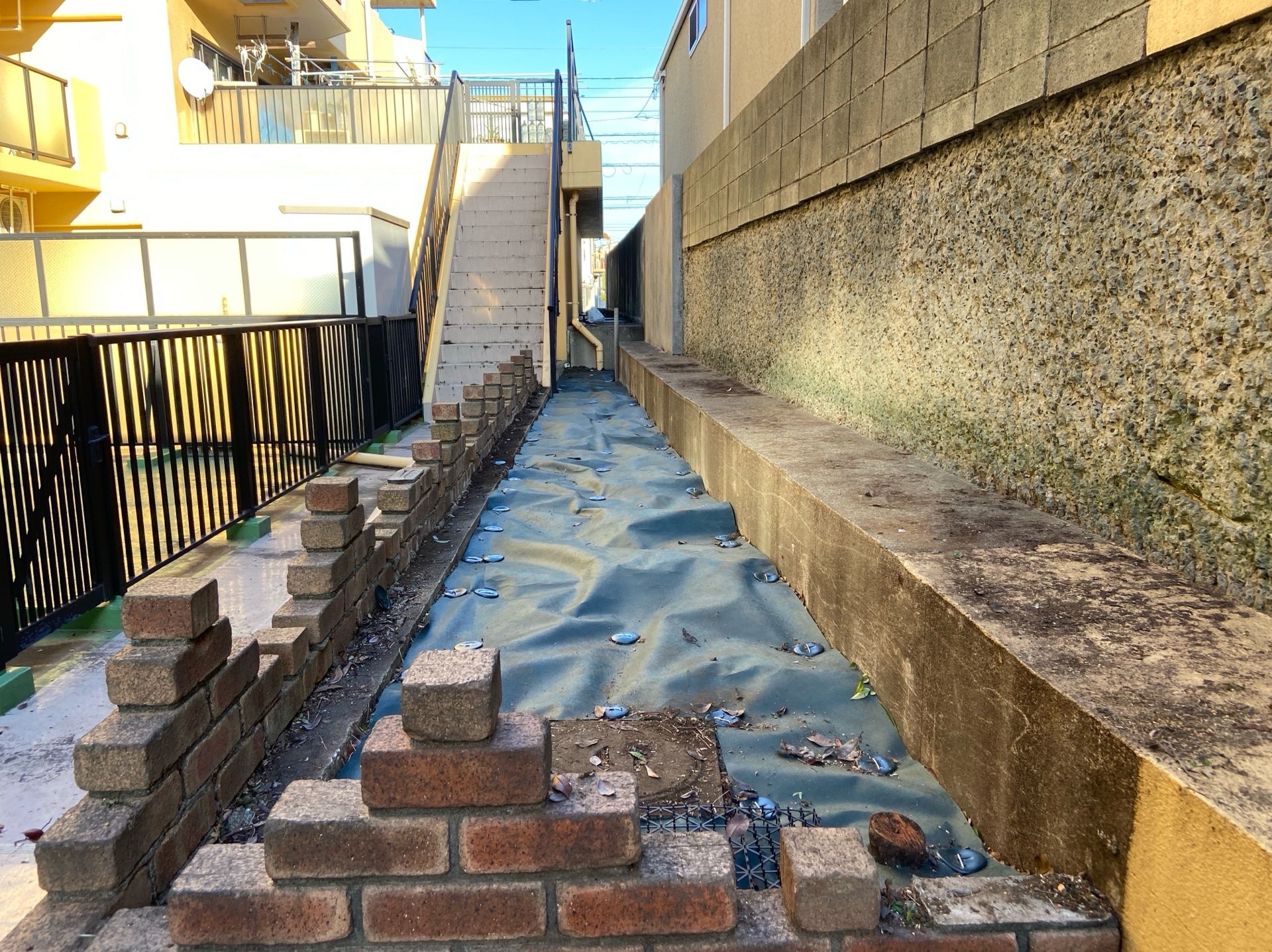 長年放置されていた植栽をすっきり伐採・整備しました!視界を遮っていた木々を取り除くことで、通路が明るく開放的になり、防犯面や通行の安全性も大幅にアップ。お子様や高齢者のいるご家庭にも安心です。今後は防草シートで雑草対策もバッチリ。管理しやすいお庭・共用部をお考えの方、ぜひご相談ください!