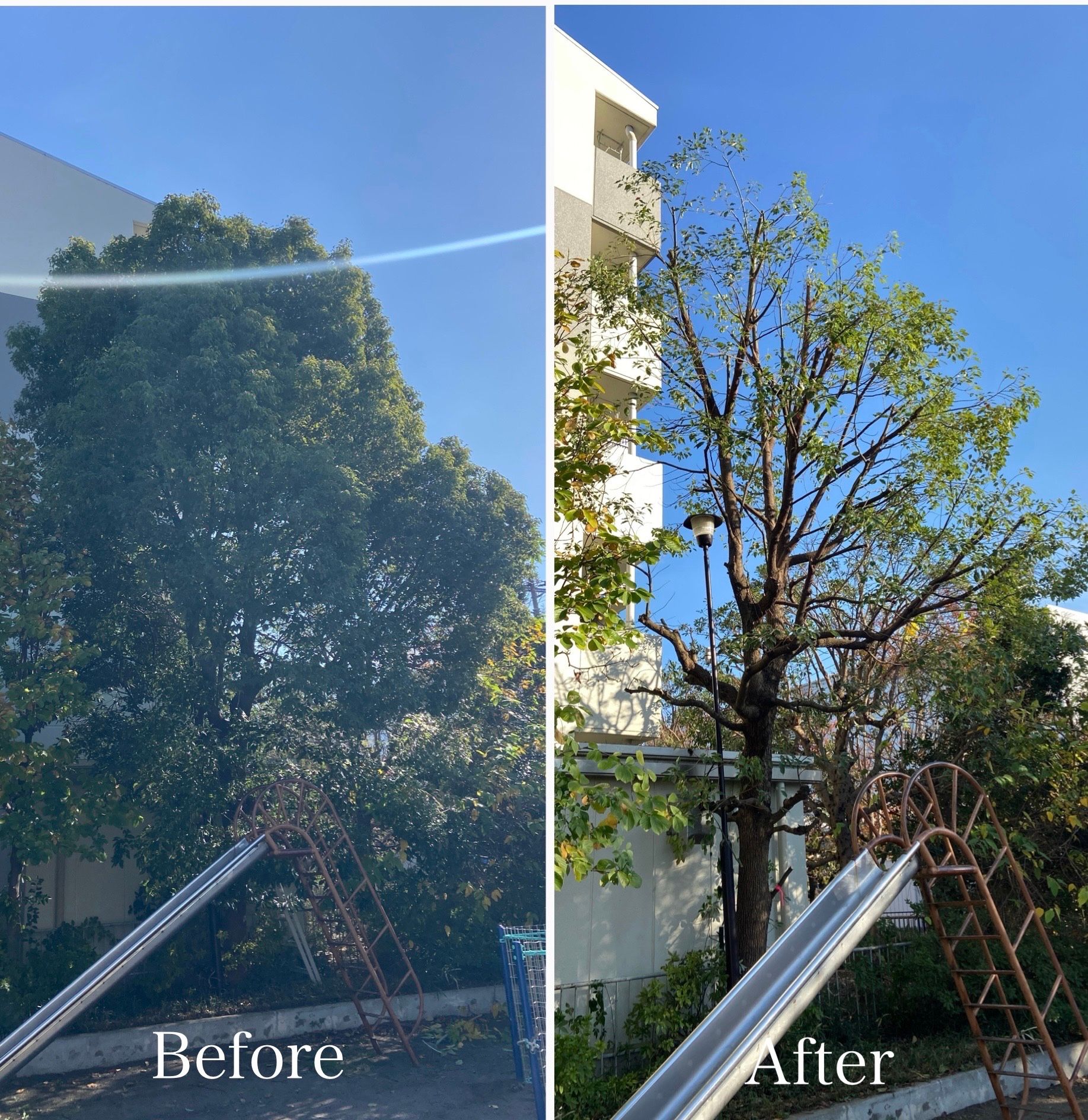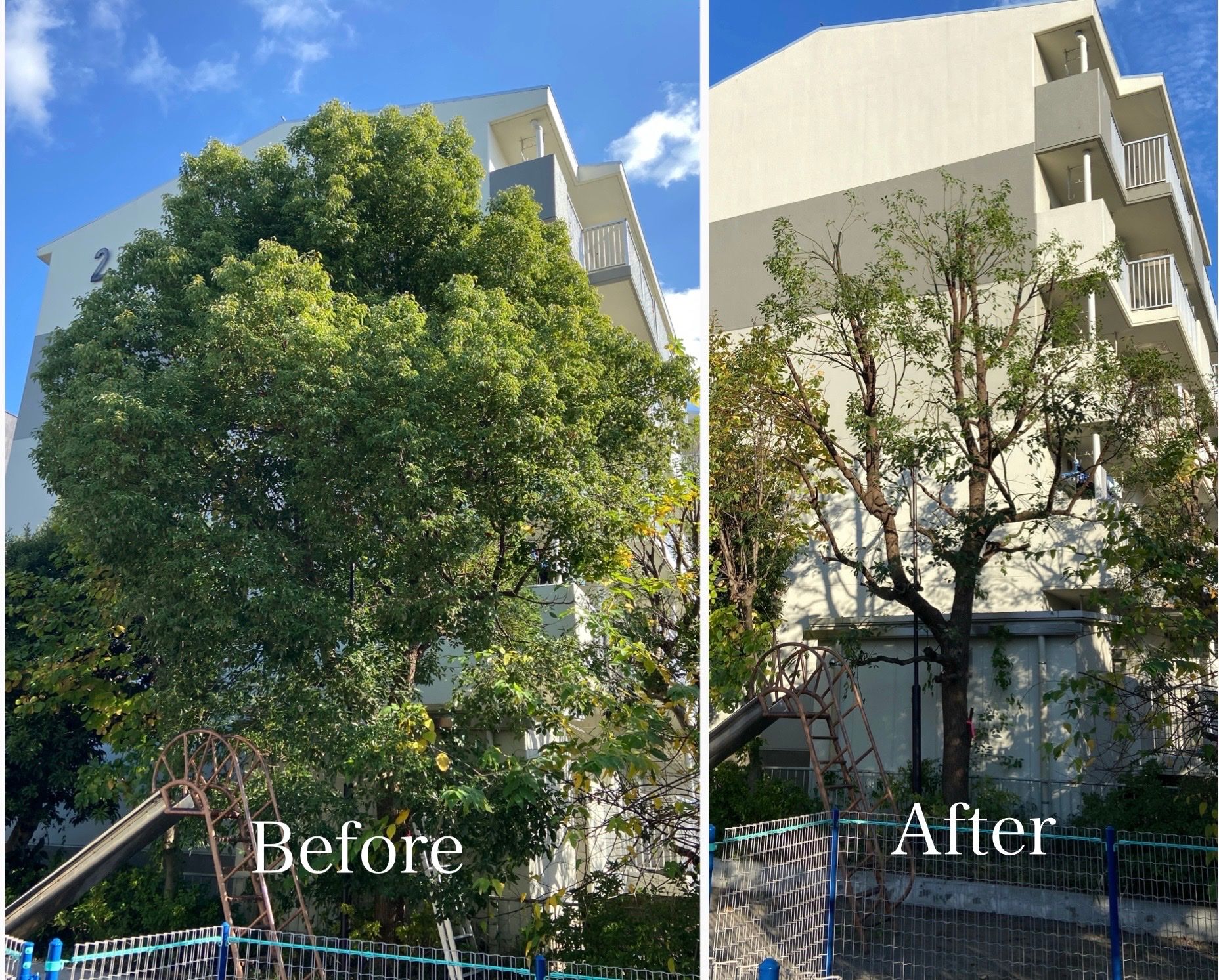 青々とした葉で元気いっぱいですが、実は「日当たりが悪くて…」「子どもの遊び場が暗い…」といったお悩みがありました。
