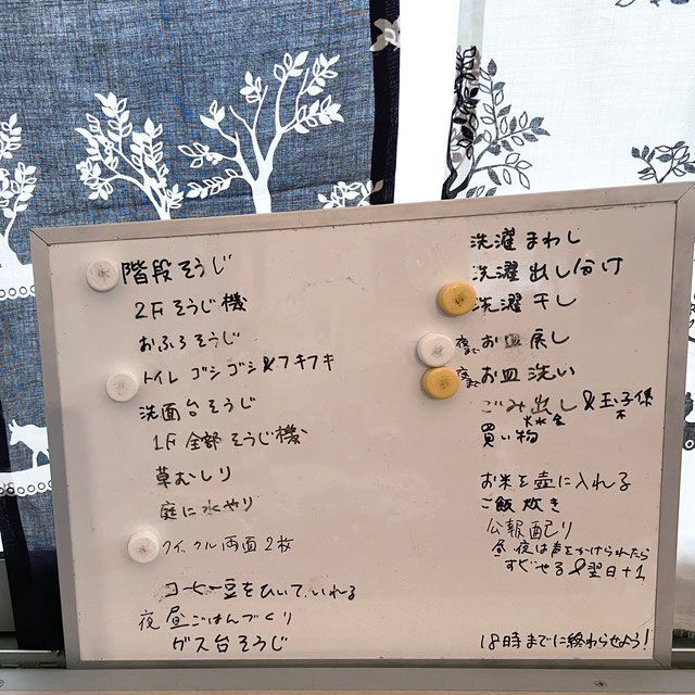 ホワイトボードに家事を書いてマグネットを使って表示しています。
