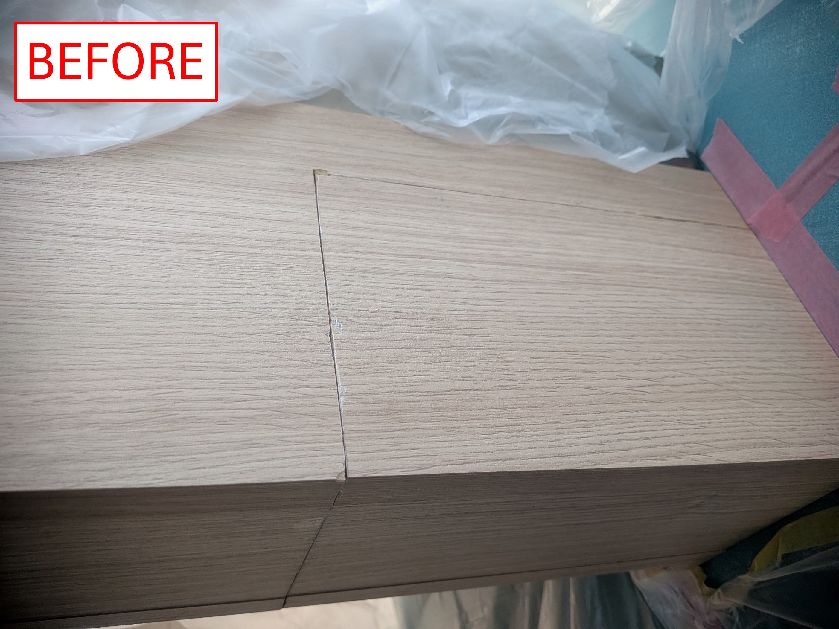 大型の現場据え付け家具の補修です。