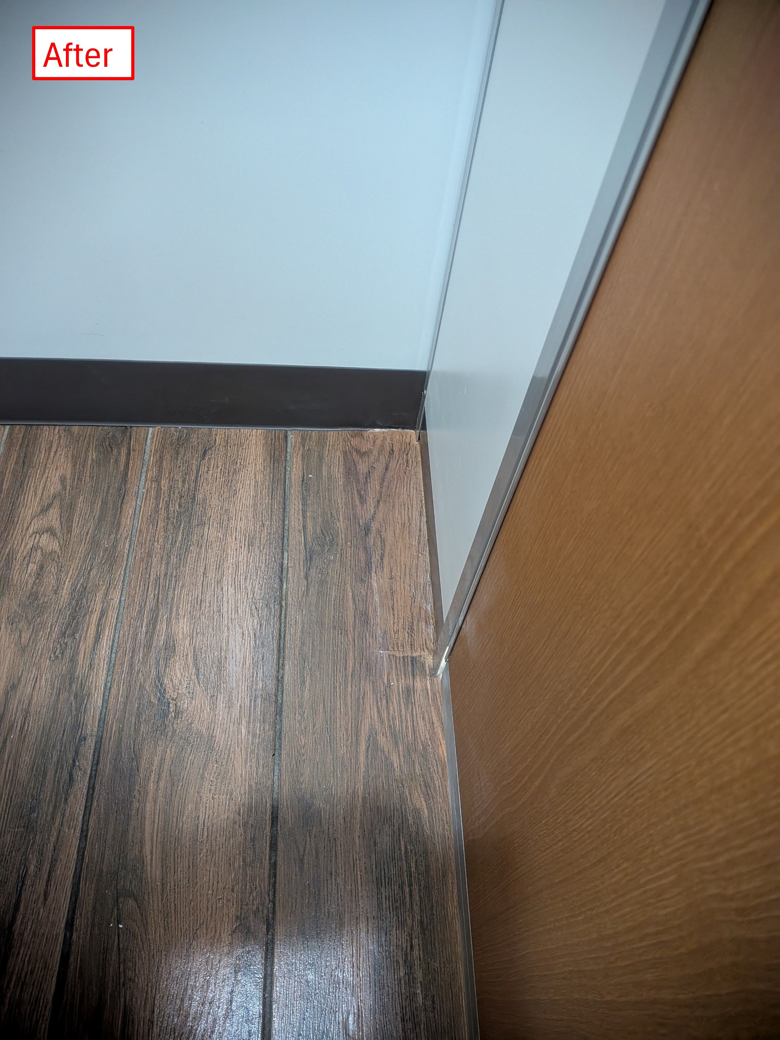なんでも、事故があって、トイレは改修復旧したが、床のモルタル部分が露出したままになってしまい、補修してほしいとの依頼。