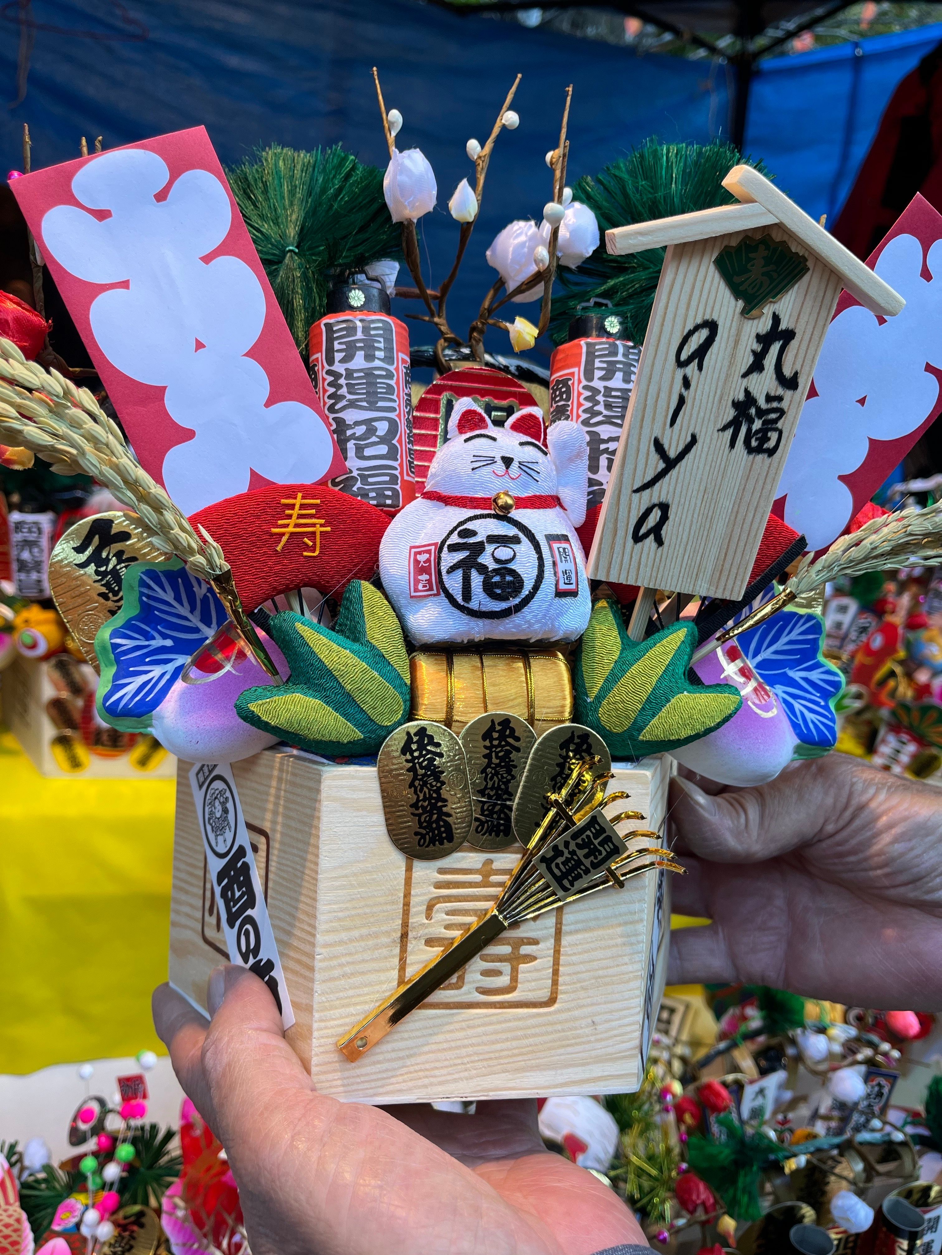 本日、二の酉深川八幡宮の境内にて熊手を購入に菱沼さんへ丸福をお腹に抱えた招き猫ちゃんに出会えて即決定、粋なおじさまが沢山飾り付けしてくれて威勢良く🤗