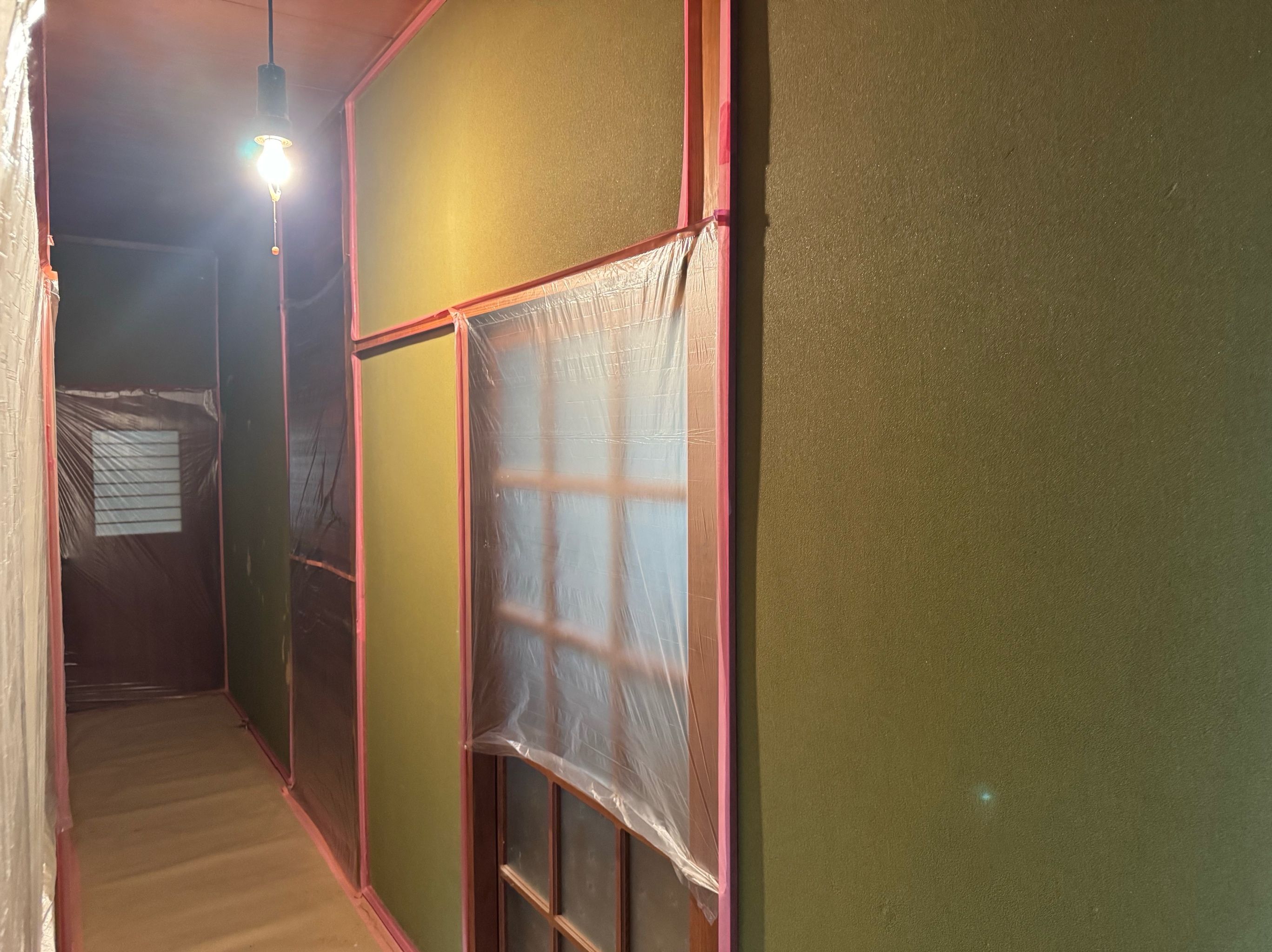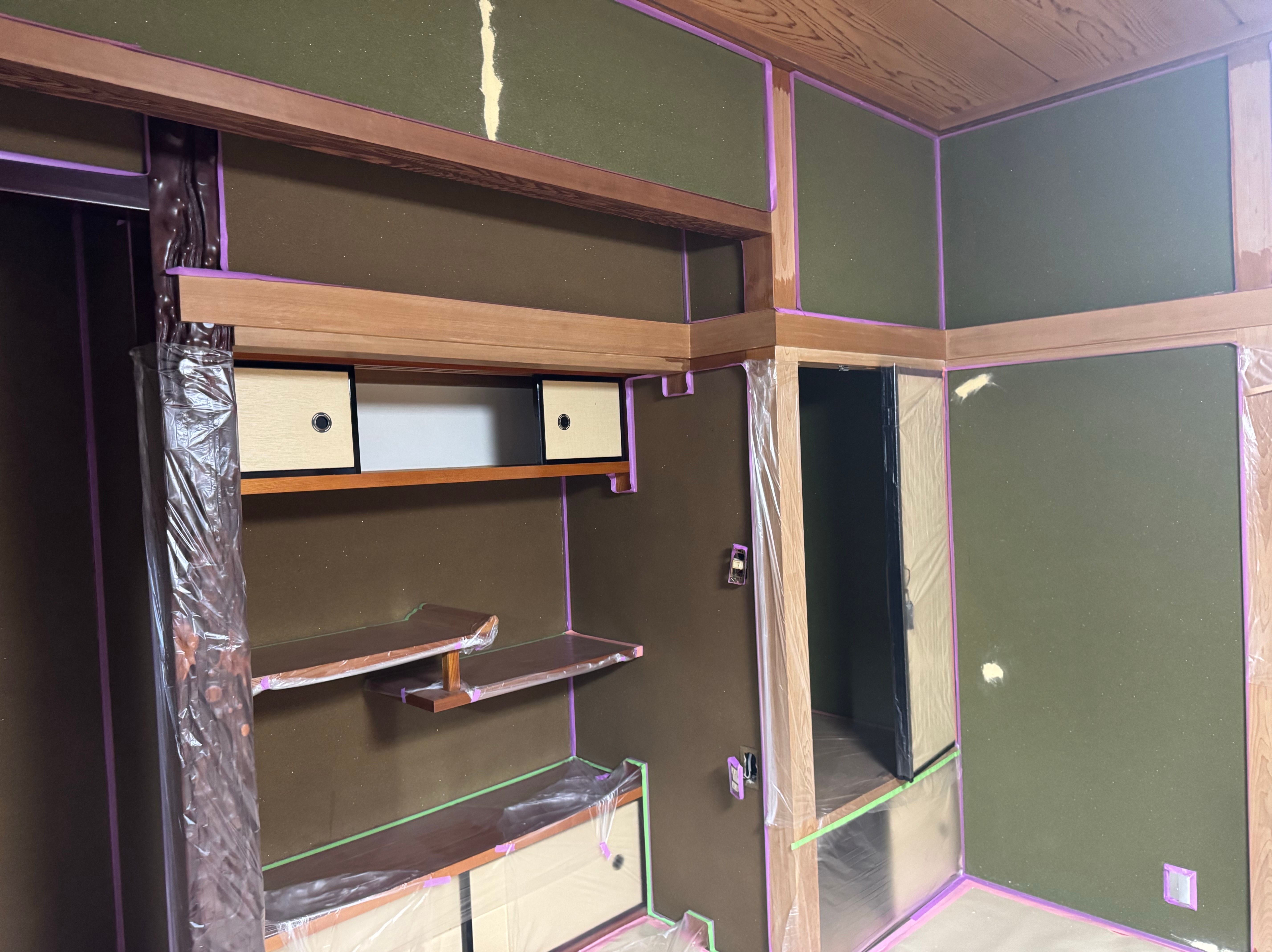 続けて本日部屋内部の聚楽壁の塗装!最近の家でわあまり見かけない、昔ながらの壁!