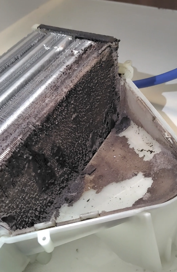 前面のフィルター掃除だけでは直らないケースが多いこのトラブルですが、プロの分解洗浄で無事復活!