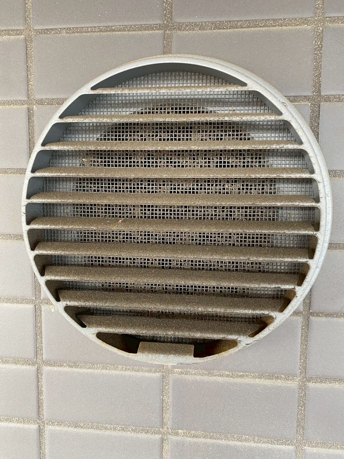 高速道路沿いのマンションで、道路側からの吸気ダクトからの空気で壁が汚れてしまうというご依頼でした。