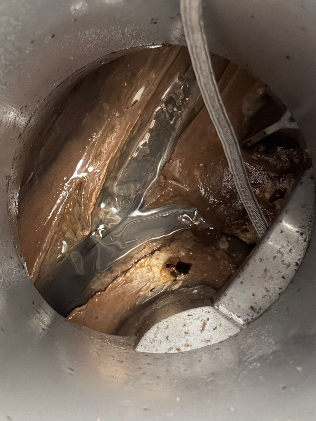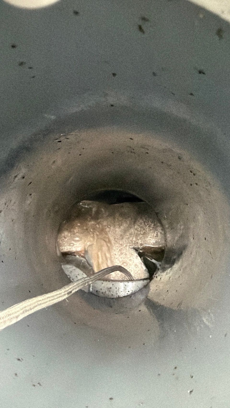 長年蓄積された油汚れ・食材カス・ヌメリが排水管内にこびりつき、