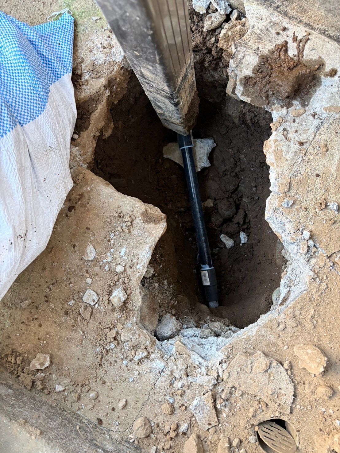 エンビ管(塩ビ管)が割れており、そこから水が漏れている状態でした。