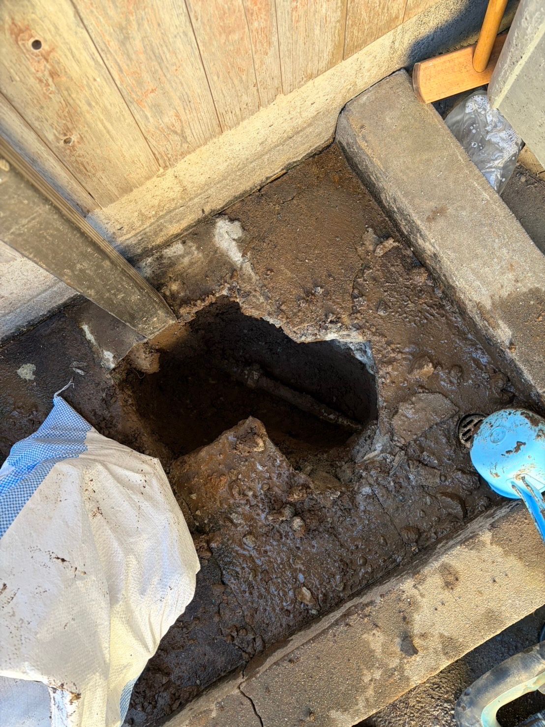 コンクリート下の給水配管から漏水していることが判明しました。