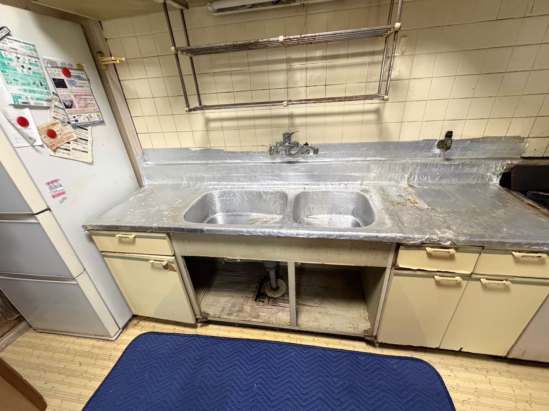 既存のシンクは長年の使用による汚れ・サビ・くすみが出てきており、清掃しても落ちにくい状態でした。