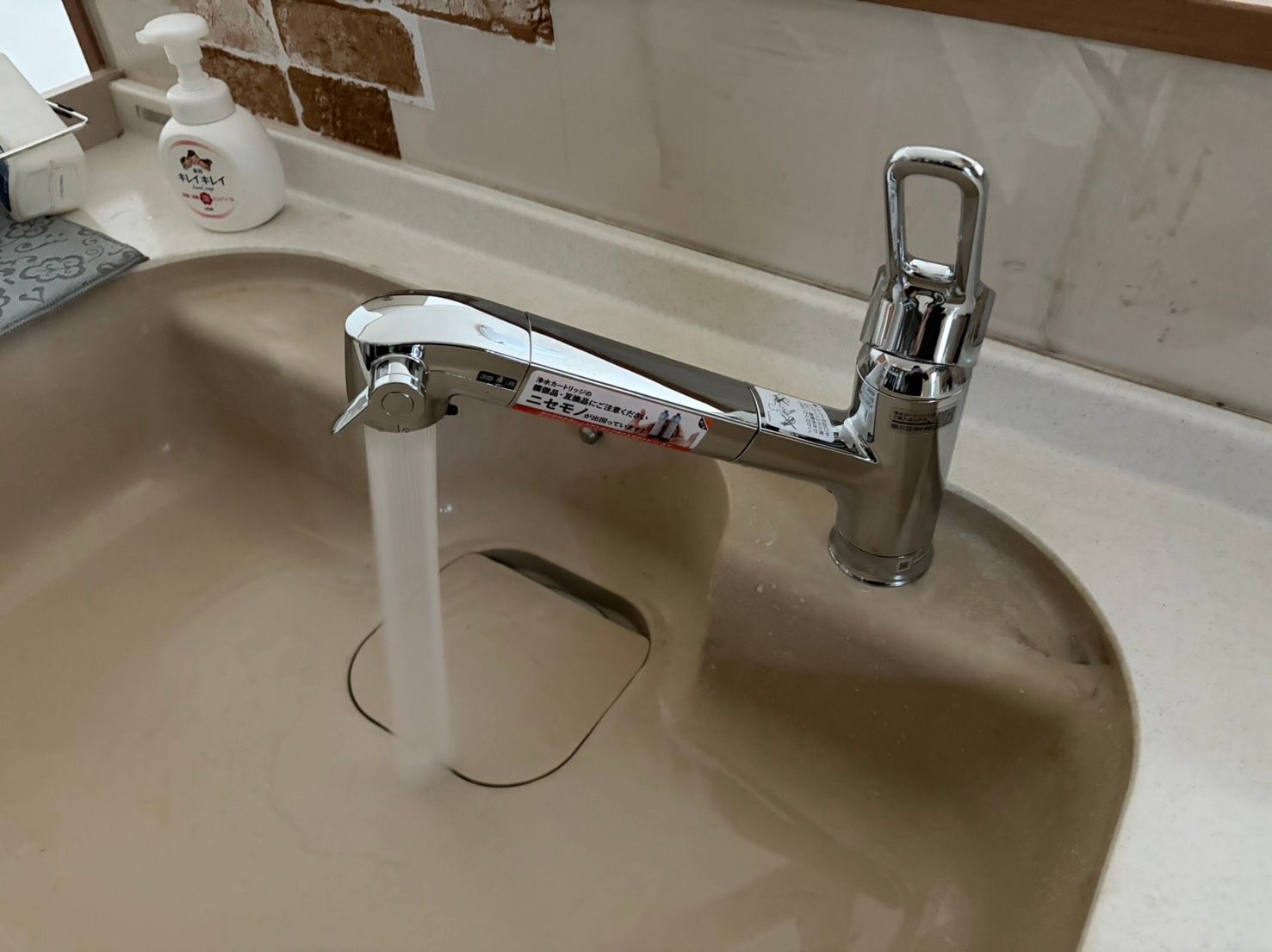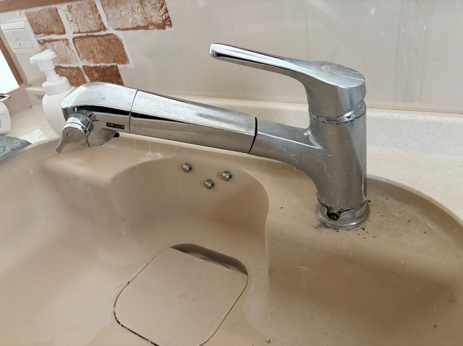 既存の混合水栓は長年使用されており、根元からの水漏れが発生していました。