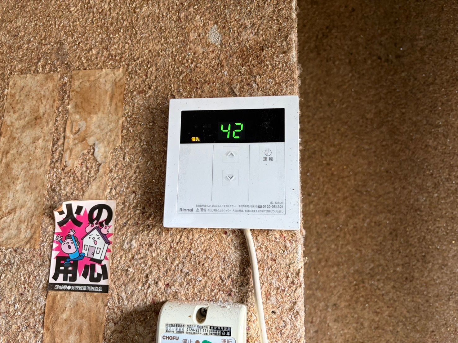 ※写真のリモコン表示も、しっかり点灯して温度設定(42℃)が確認できました。