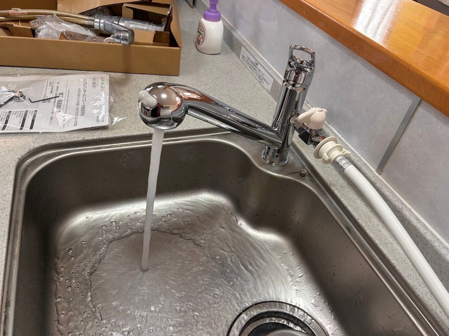 新しい水栓へ交換後は、レバー操作がスムーズになり、水量・温度調整も快適に。