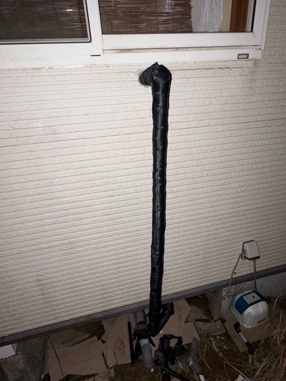 屋外に出る部分は特に冷えやすいので、保温材+防水テープでしっかり巻き上げ。
