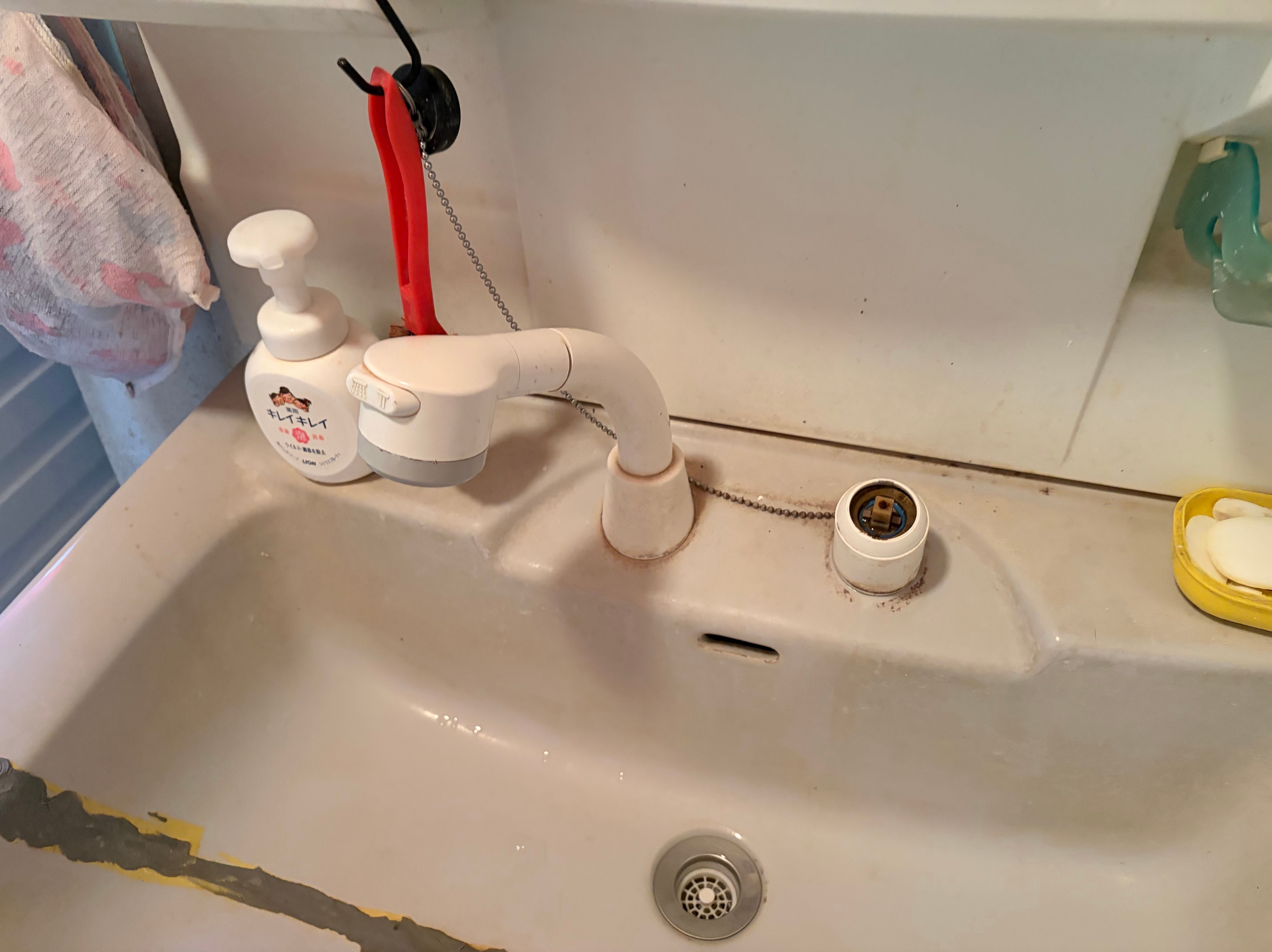 「洗面台の水栓から水が漏れている」とのご相談をいただき、現地へお伺いしました。