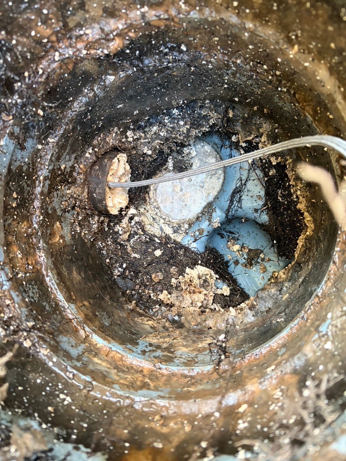 配管が長い構造のため、長年の油汚れ・ヘドロ・土砂が蓄積し、かなり強固な詰まりに…。