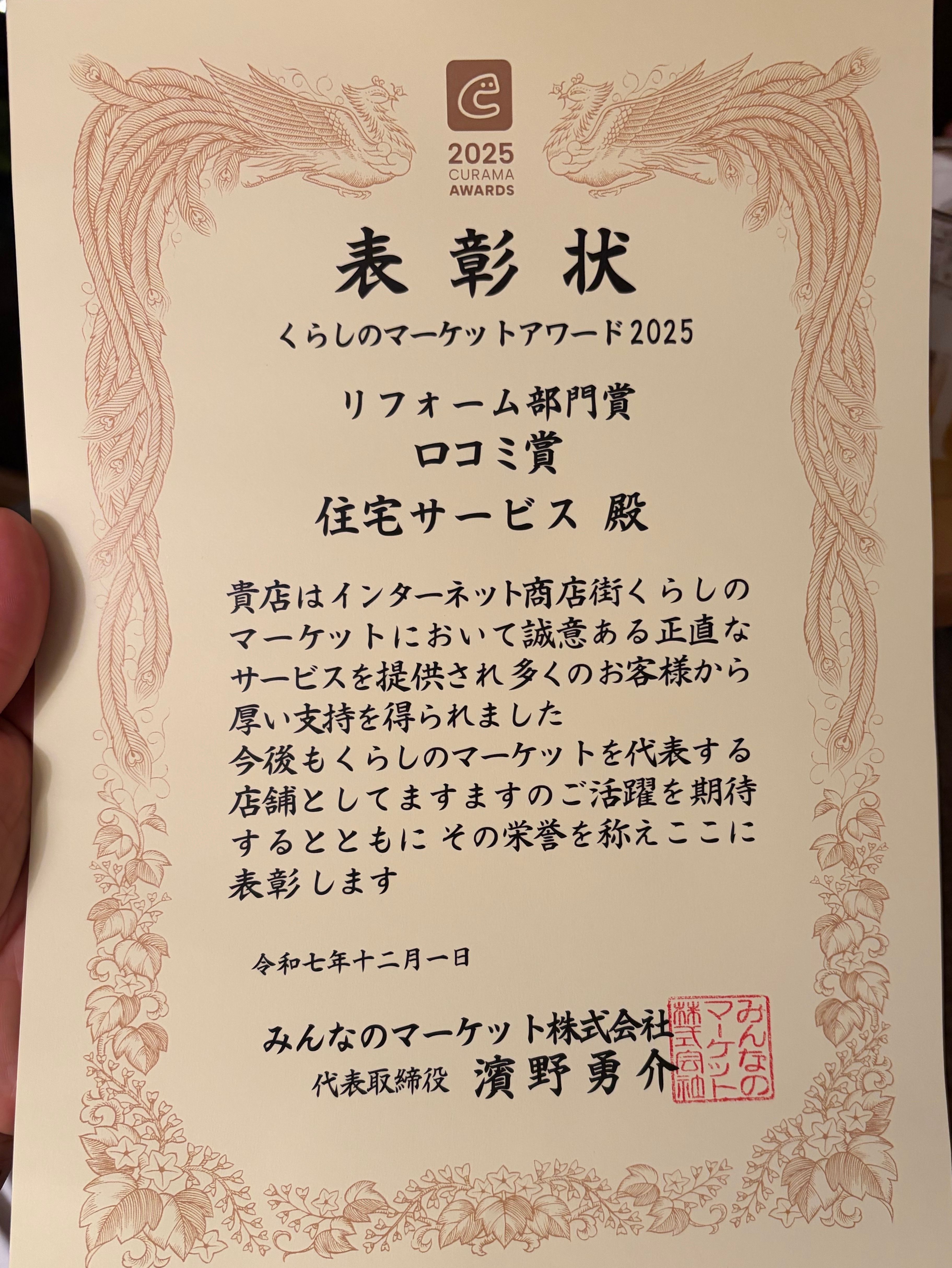 今後ともくらしのマーケットを、住宅サービスをよろしくお願い致します。