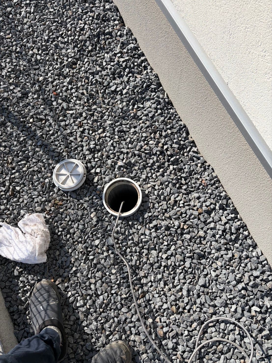 屋外の排水マス(点検口)を開けて内部を確認し、