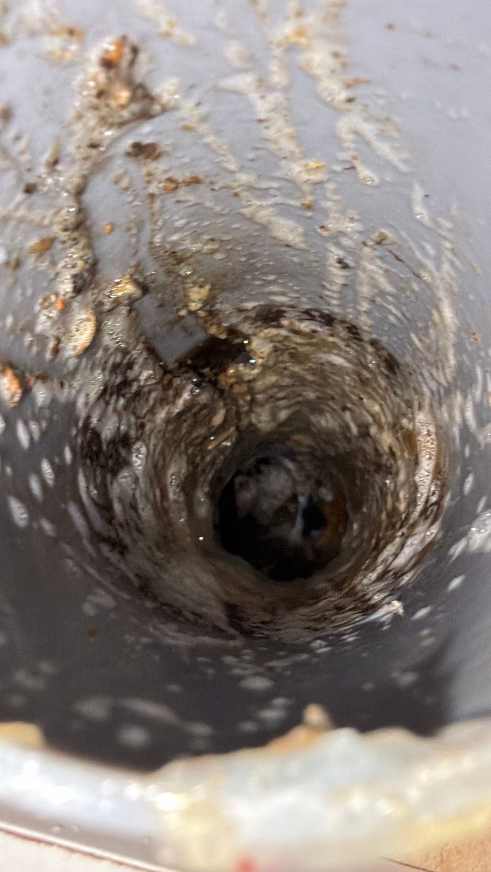 油・洗剤カス・食材カス が排水管の内側に付着して、徐々に通り道が狭くなるケースです。