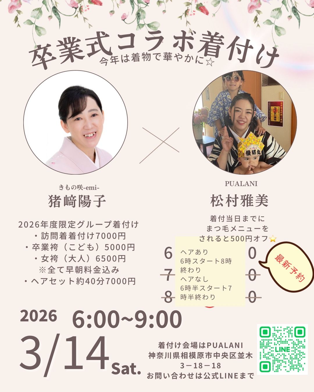 相模原市中央区並木のサロンPUALANIさんとコラボで訪問着や卒業袴の合同着付けをさせていただきます。