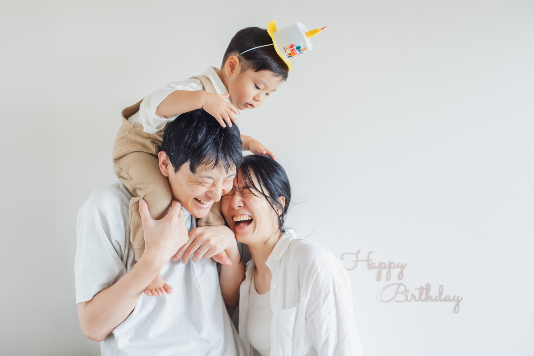 先日、素敵な3人ご家族の2歳のバースデーフォトをご自宅へお伺いして撮影させていただきました。主役は元気いっぱいの男の子!