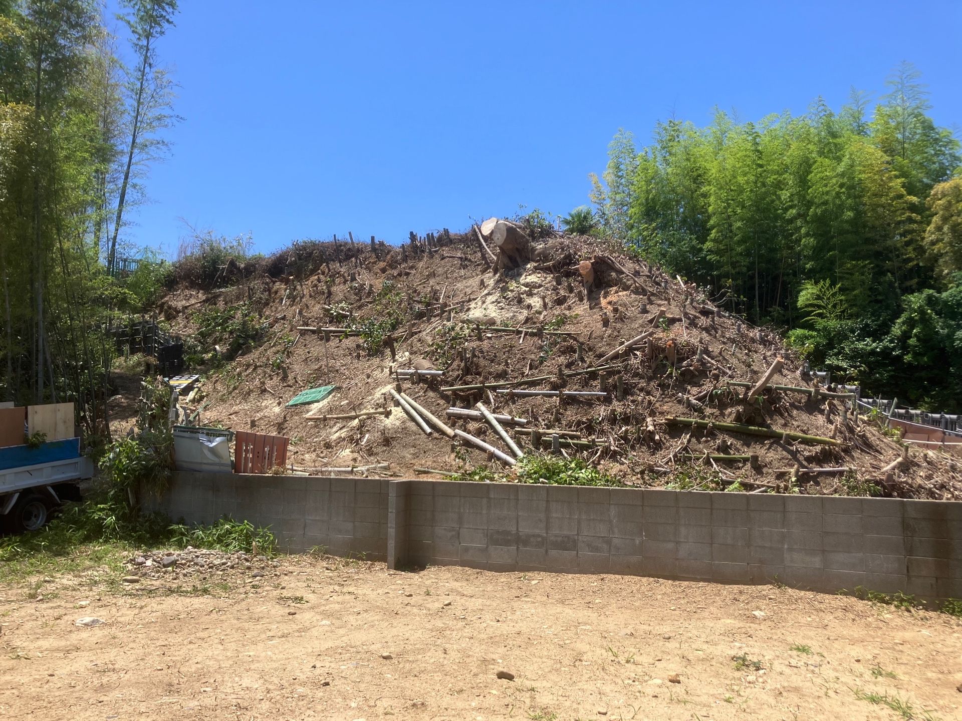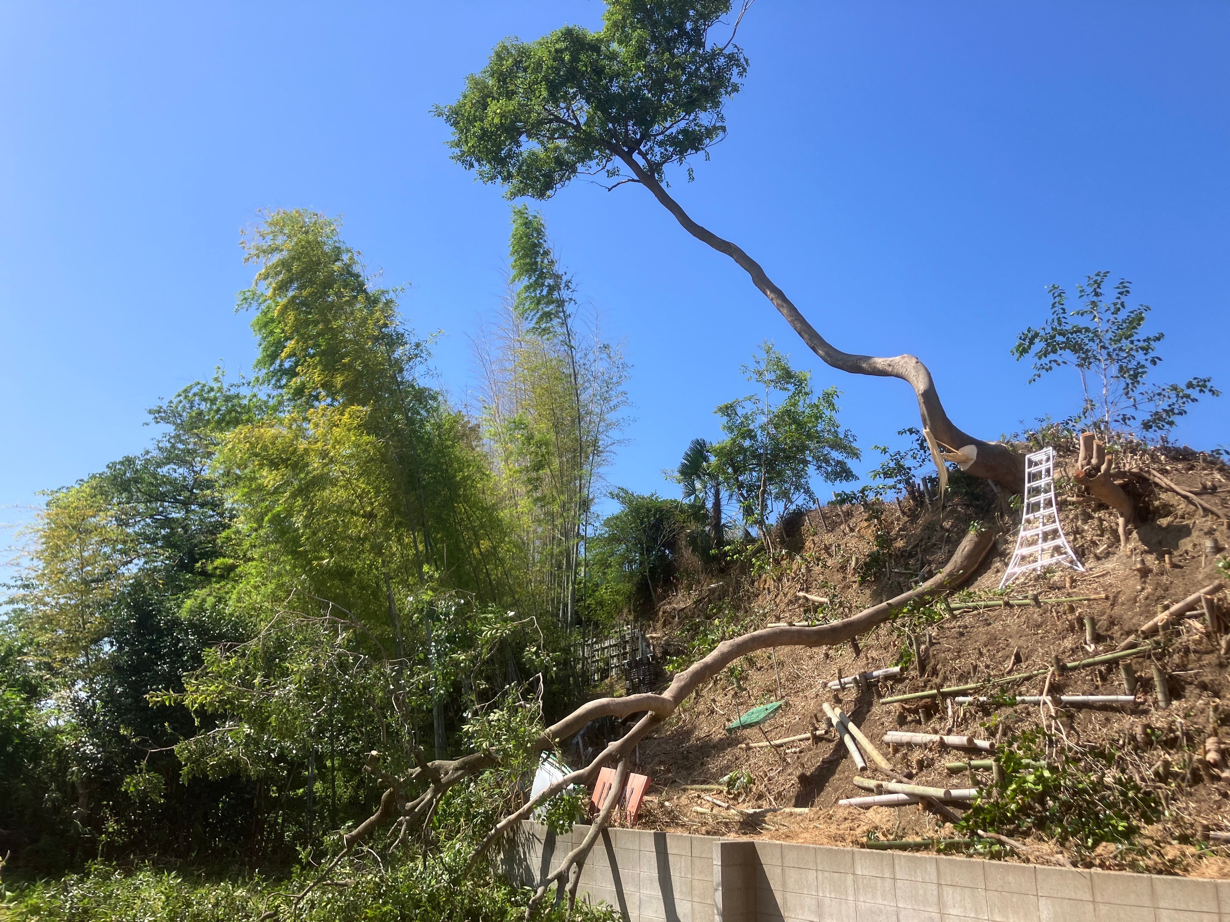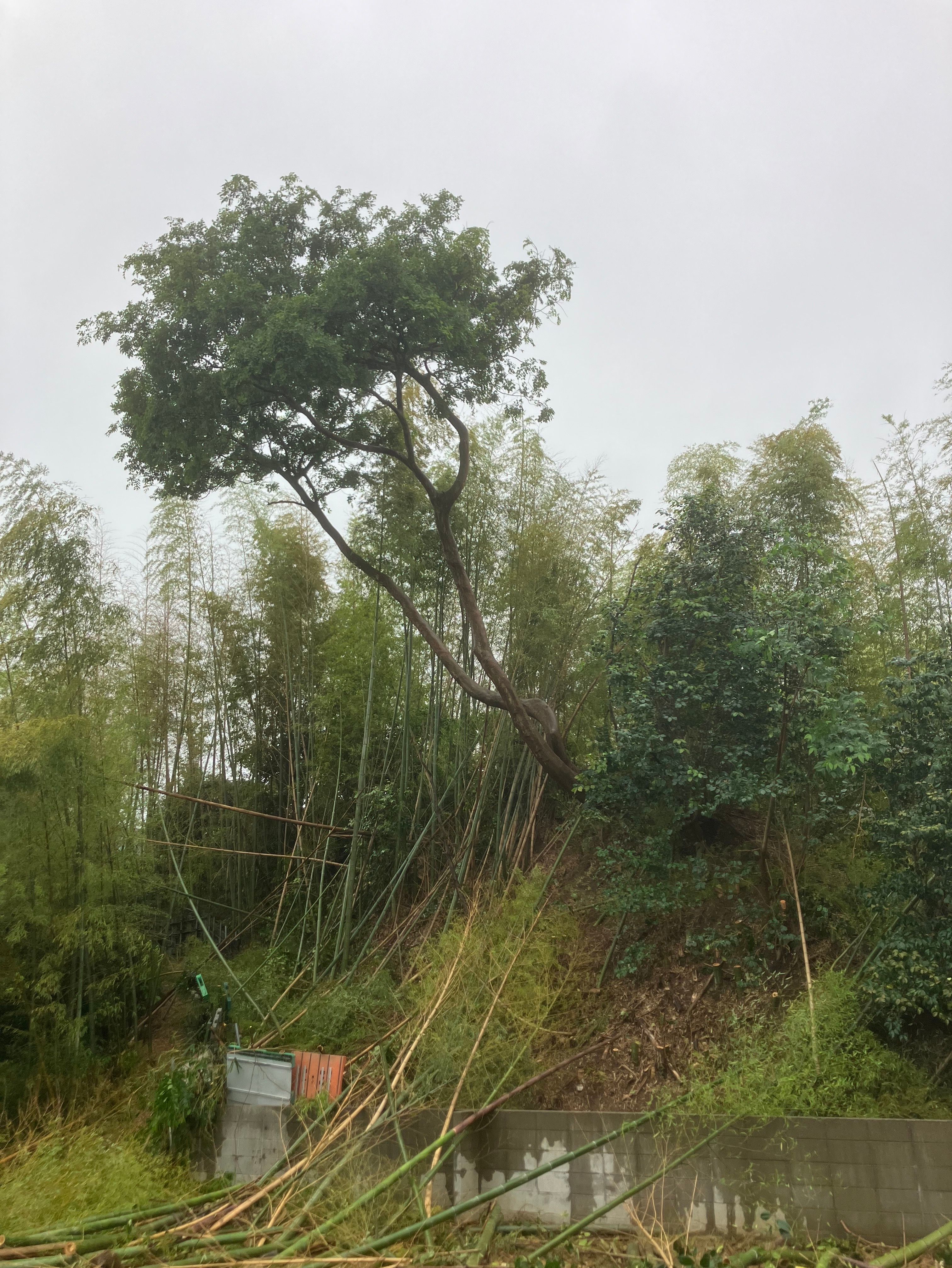 竹林伐採の現場の最後の仕上げで大きな偏心木を伐採しました。
