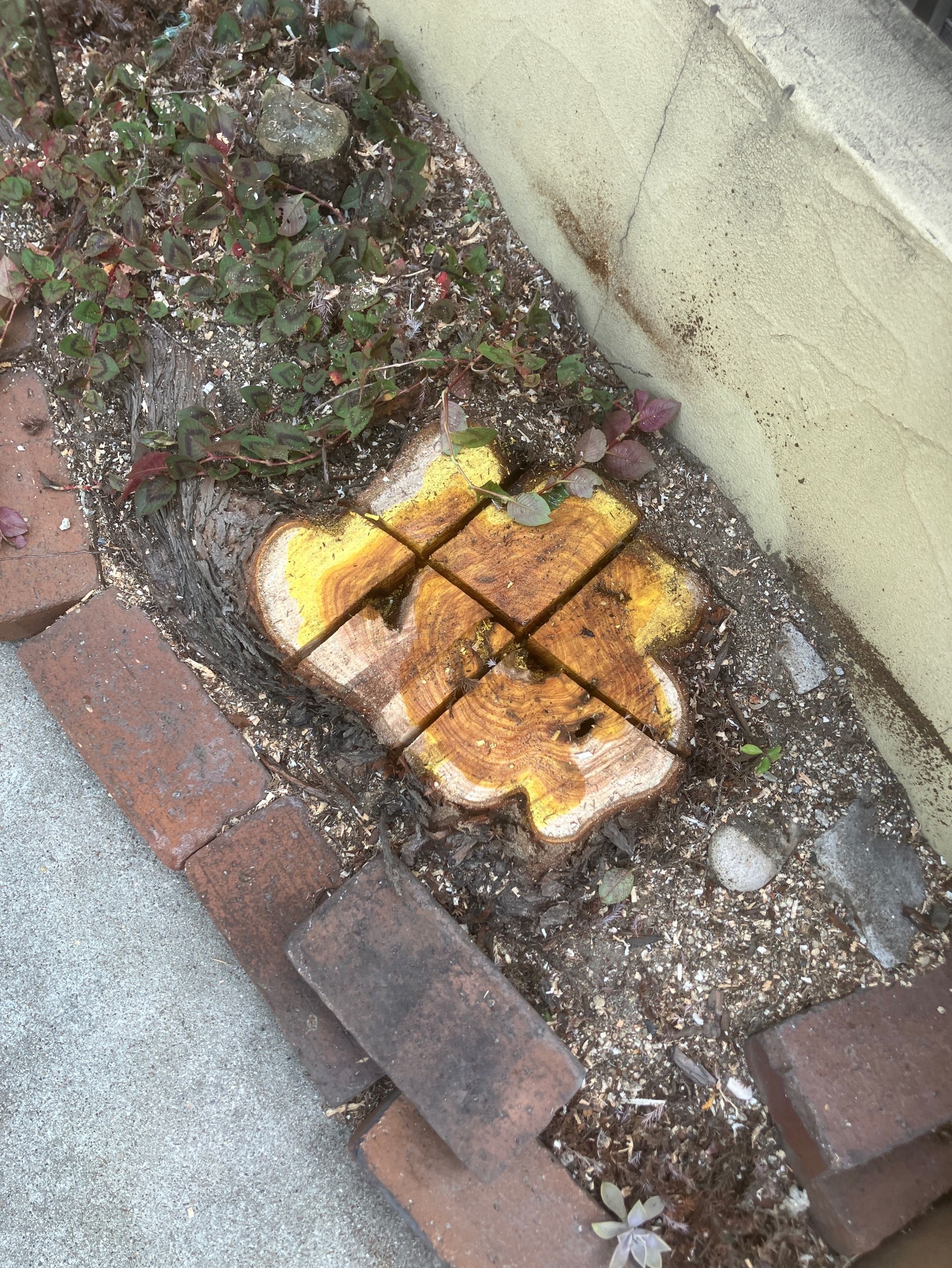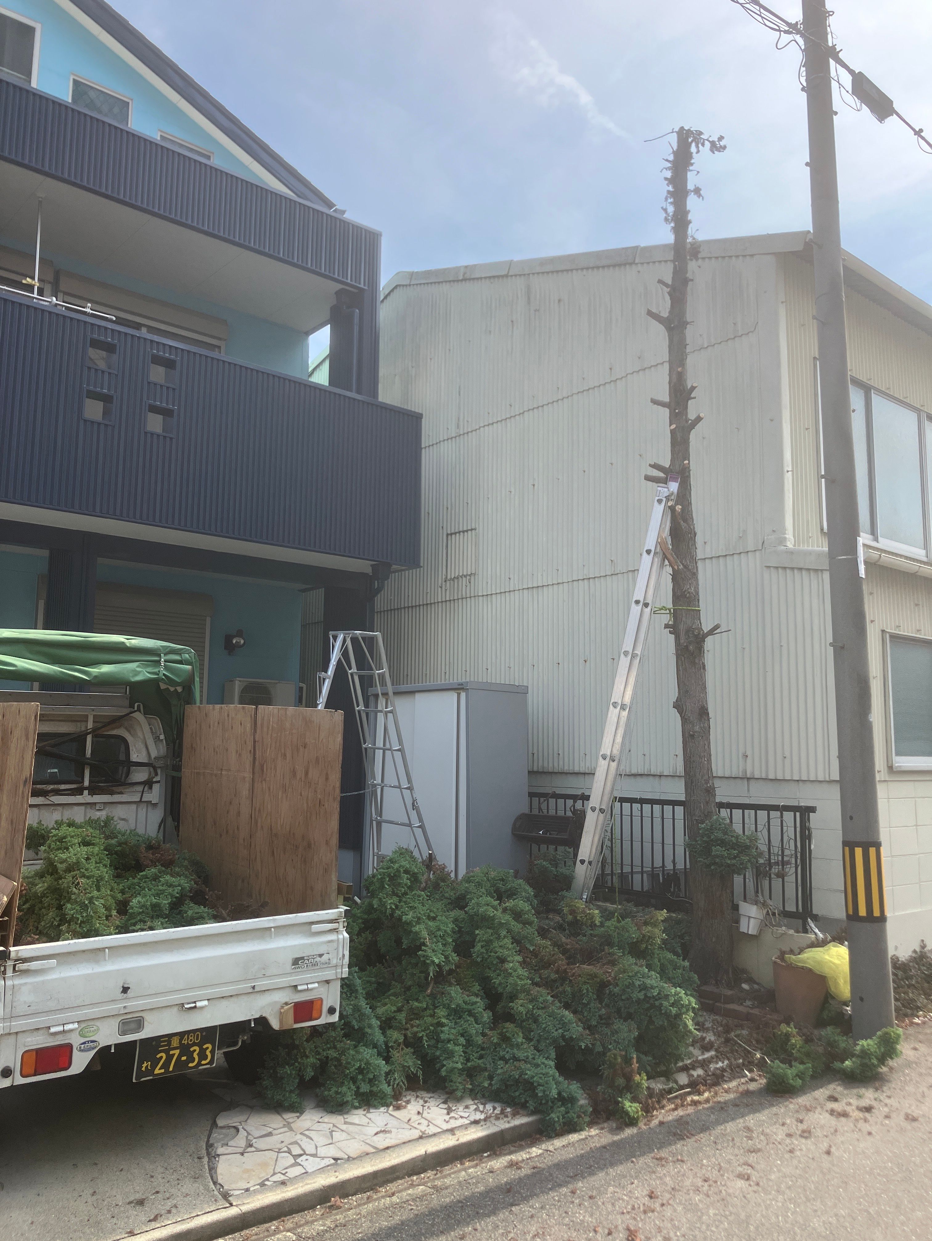 枝を落として、幹は上から段階的に切り下ろしていき慎重に処理しました。