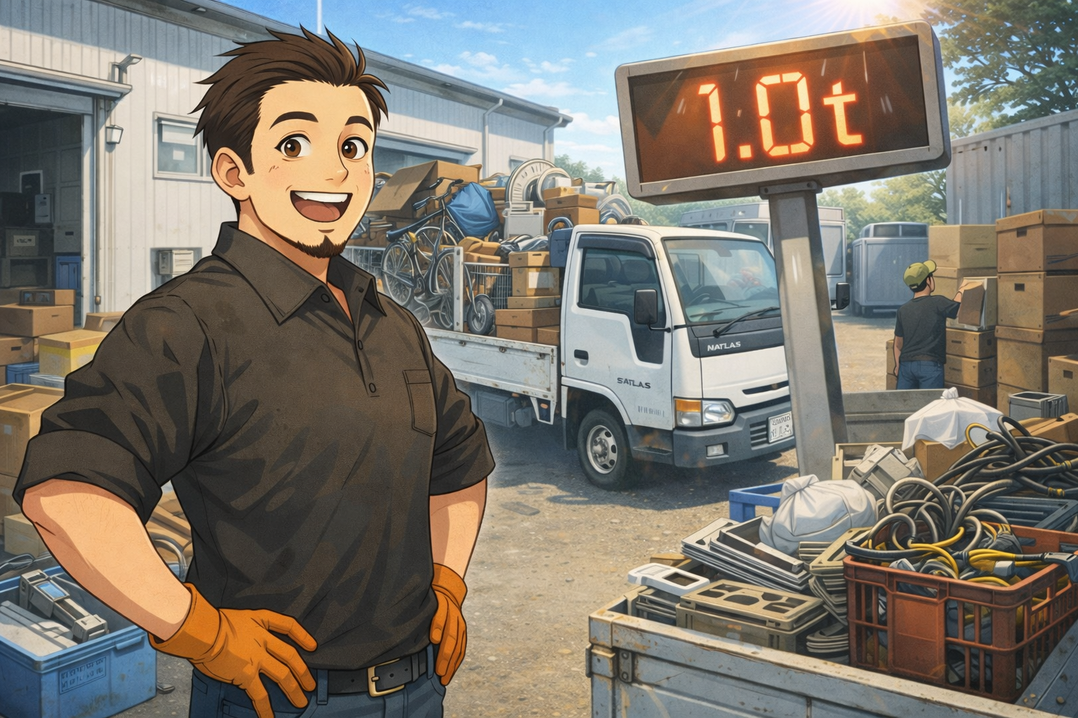本日は、まず 弊社事業所で分別作業 を行い、