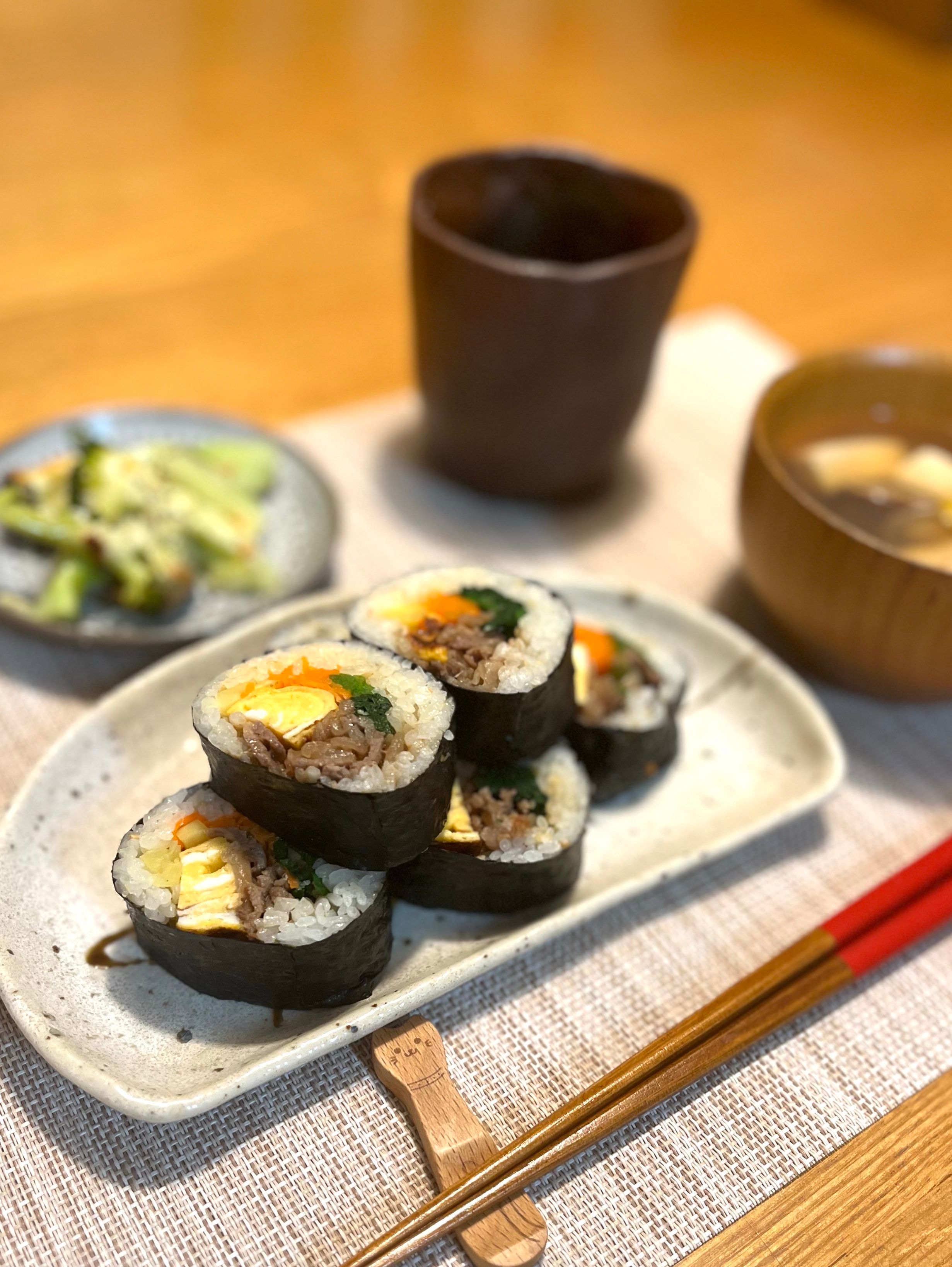 巻き寿司を作る時、私はいつも祖母の隣に座り、