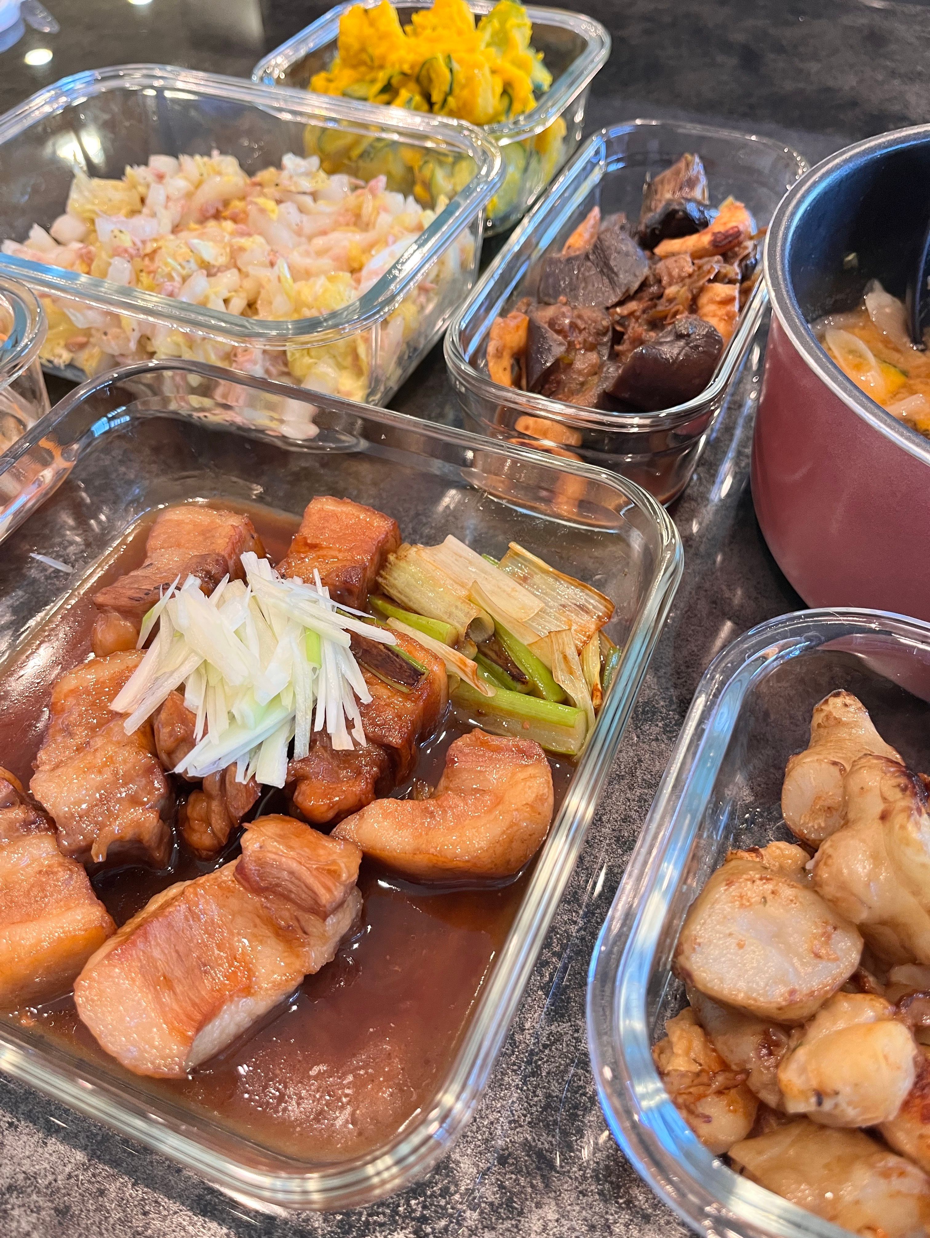 私は調理に専念し、リクエストの「豚の角煮」を含む7品が完成。