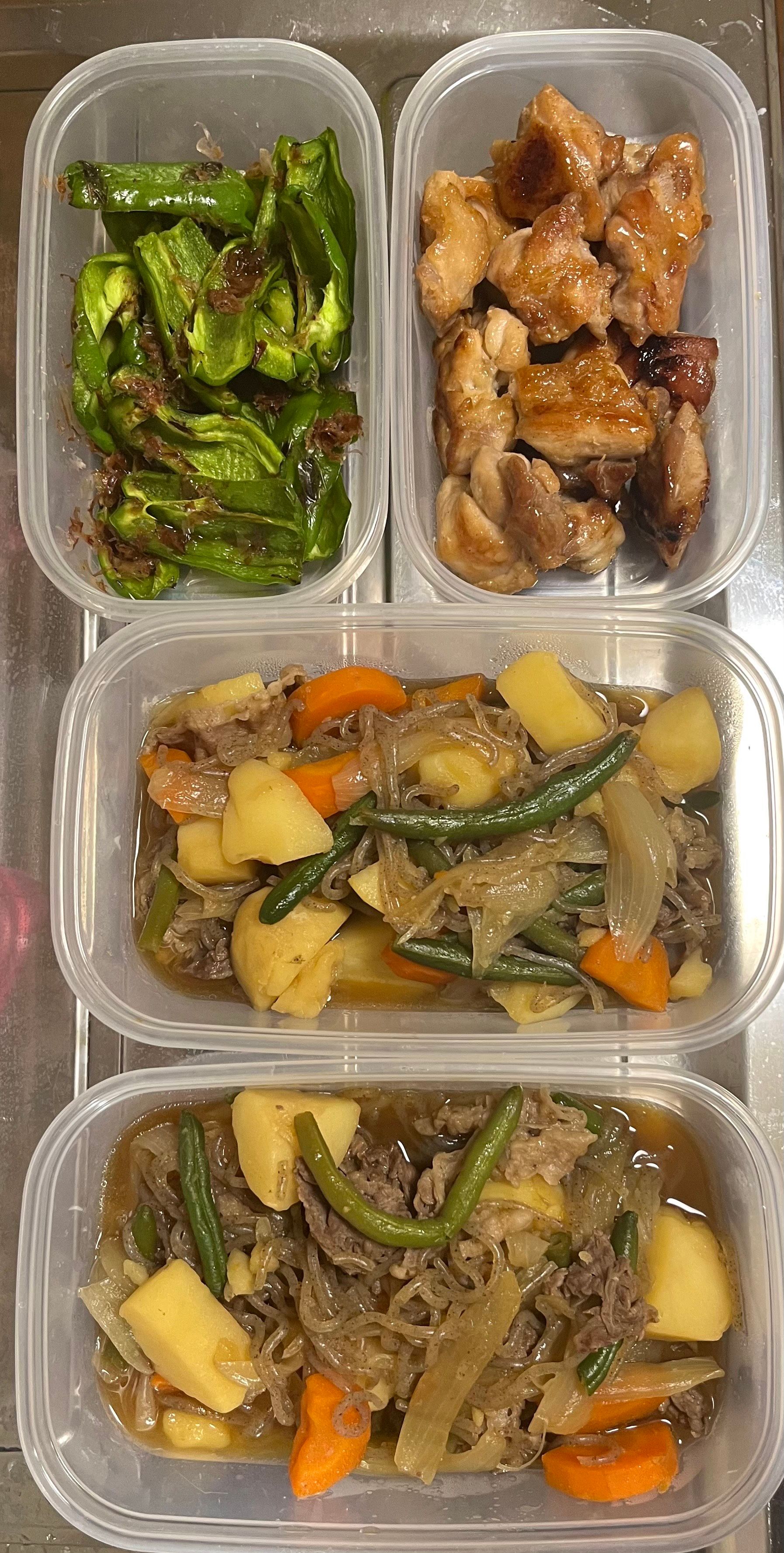 定期ご利用のお客様です。リクエストは・主菜多め・肉じゃが・オムレツ・みょうがの甘酢漬けどの品もリピートのリクエストです定期ご利用していただき、感想をうかがうことで、よりご希望に寄り添ったサービスになります。