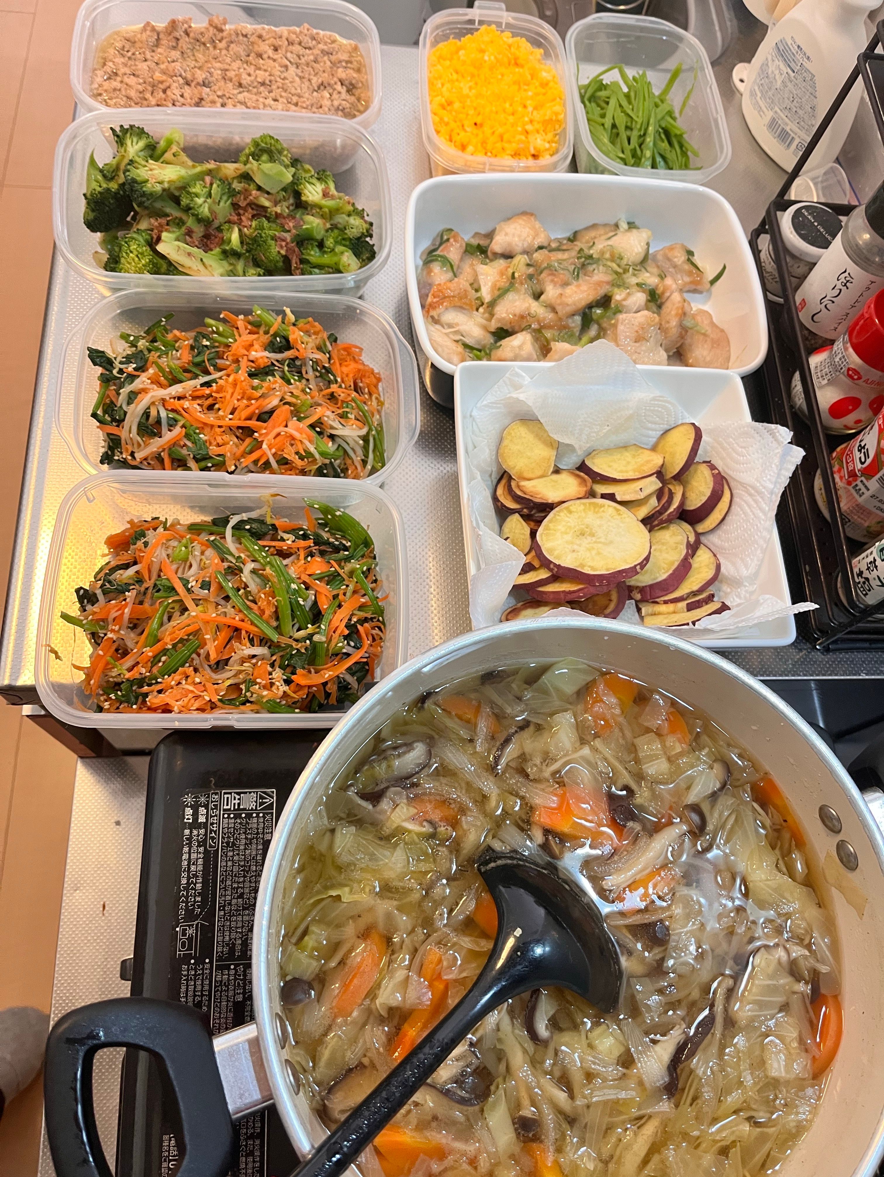 月2回ご利用いただいている産後のお客様宅です。2時間で「野菜たっぷりのおかず」を中心に6品調理いたしました。