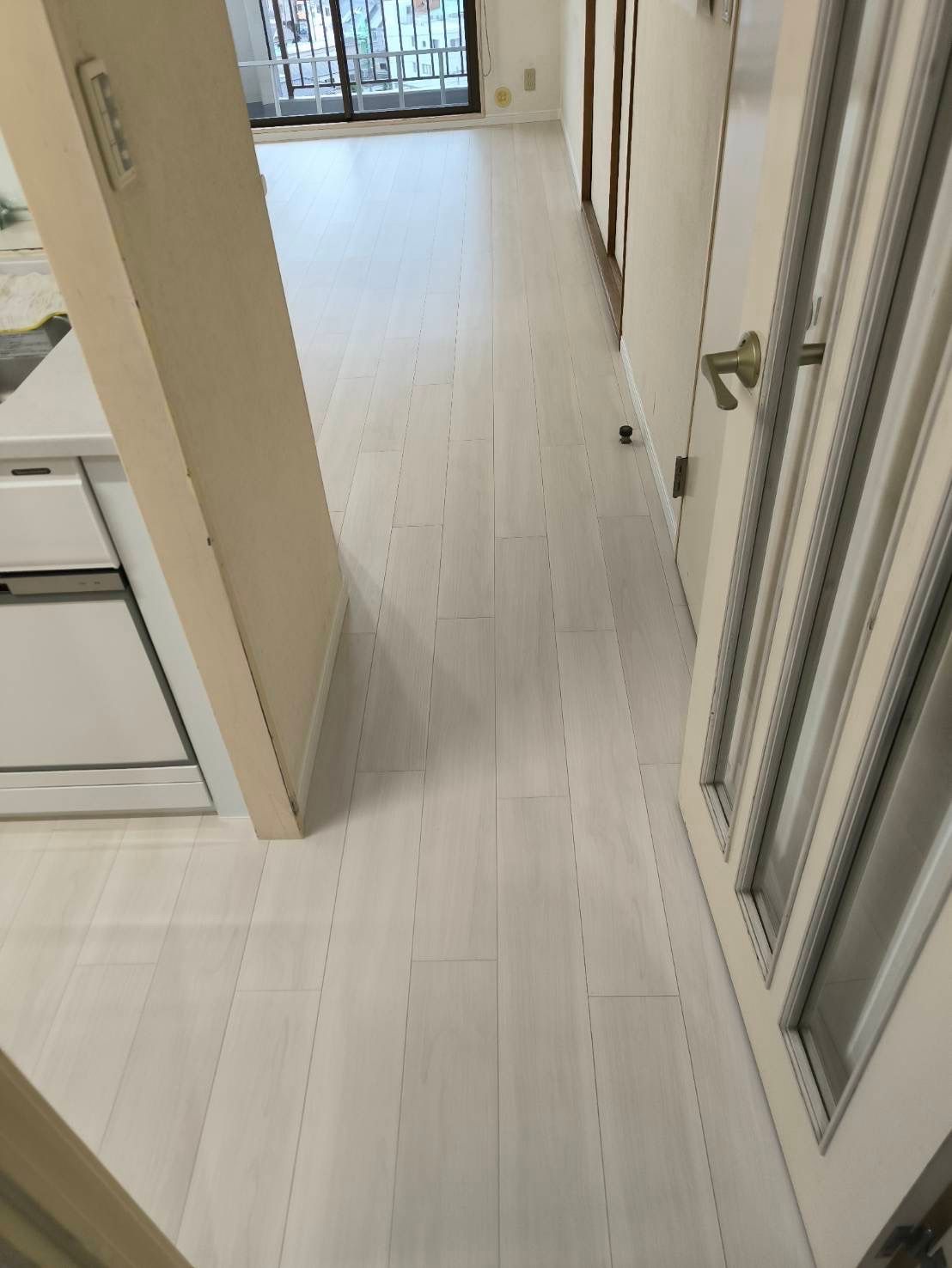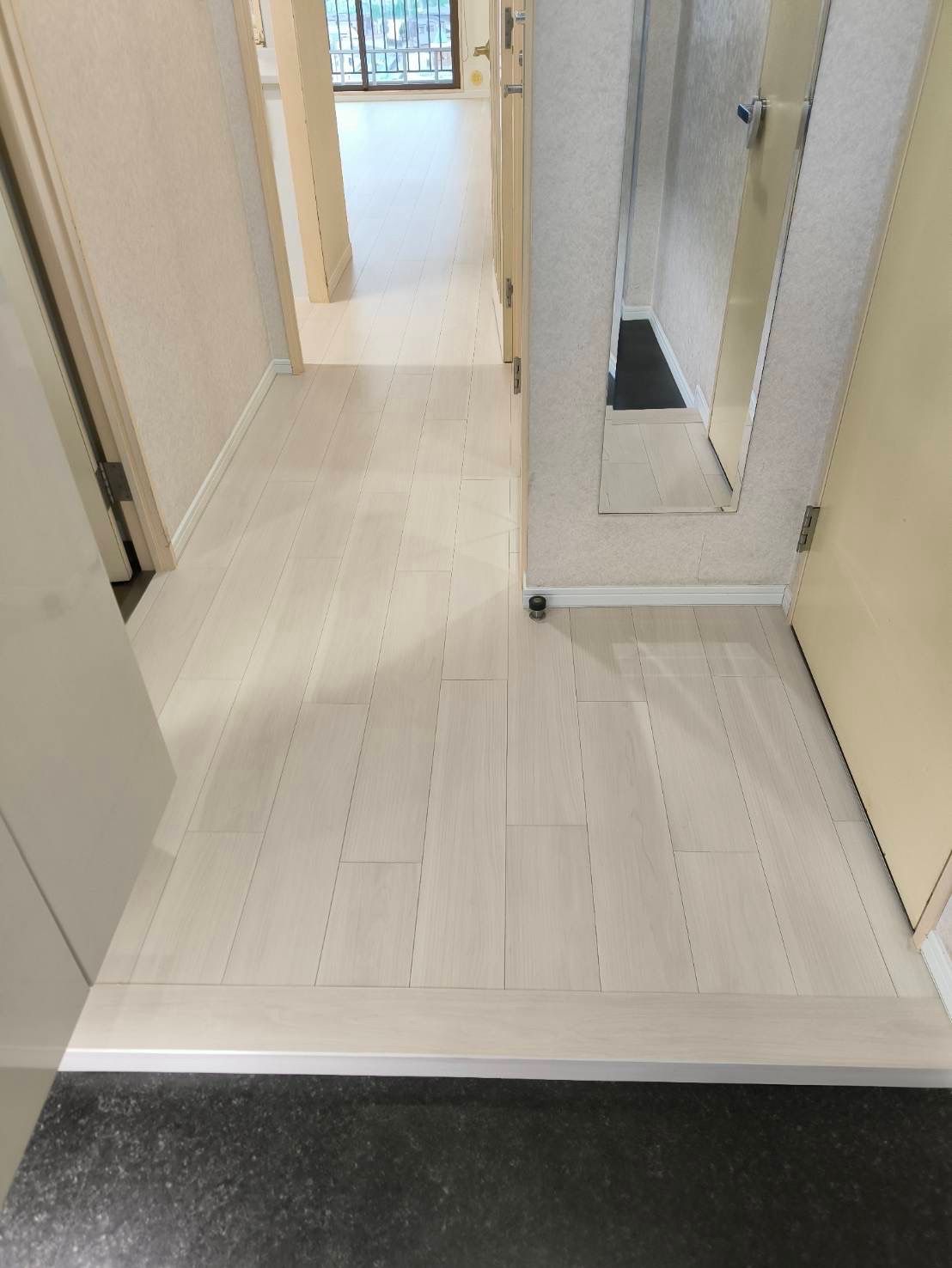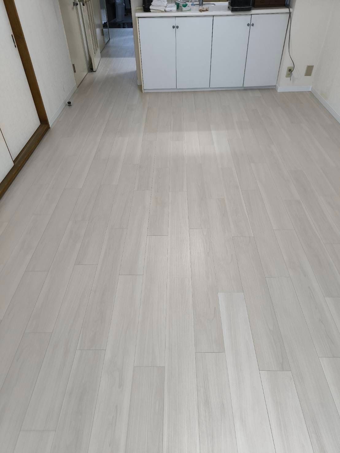 ①リビングと廊下24平米フローリング上張り施工