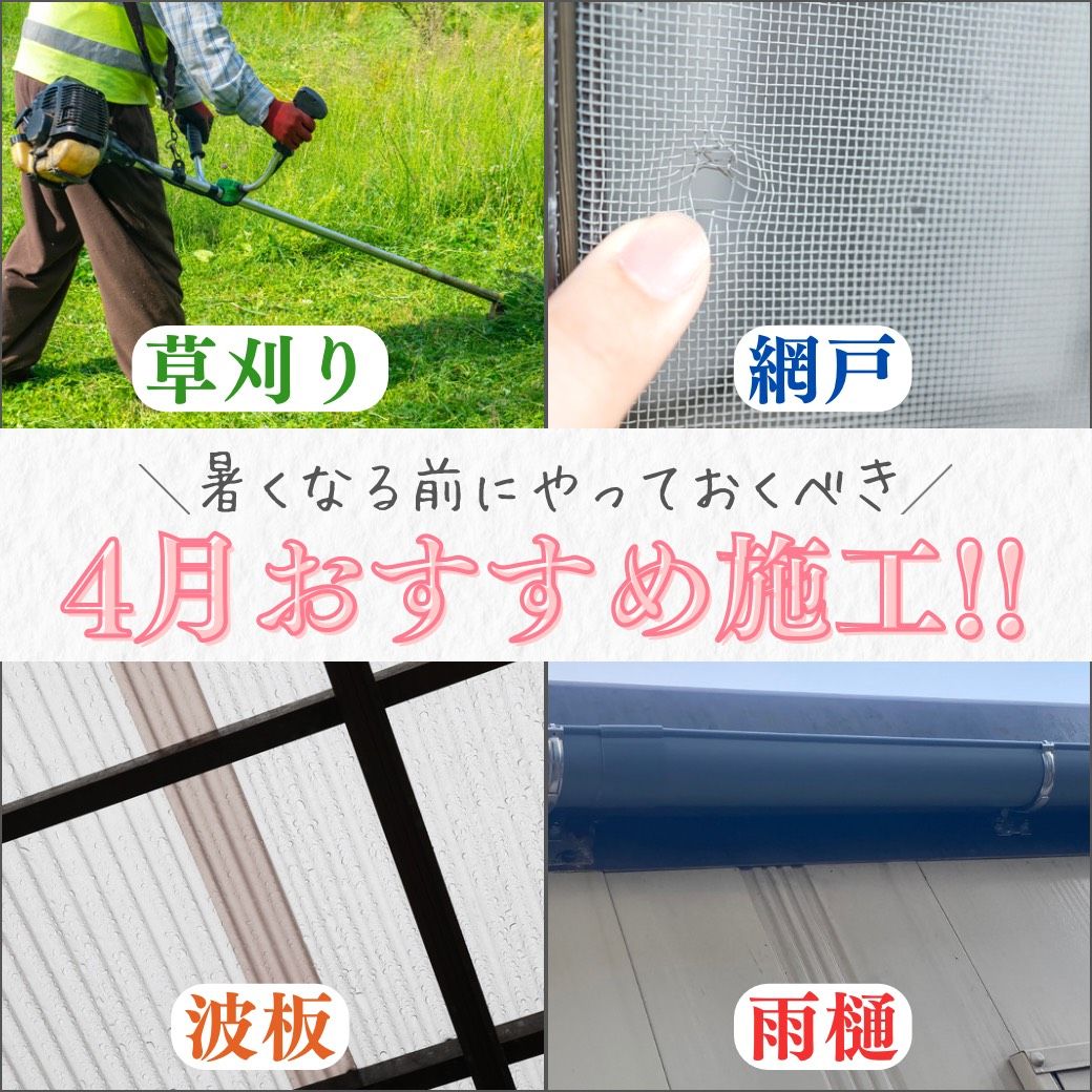 暖かくなり、外回りやお家のメンテナンスを始める方が増えてきましたね。