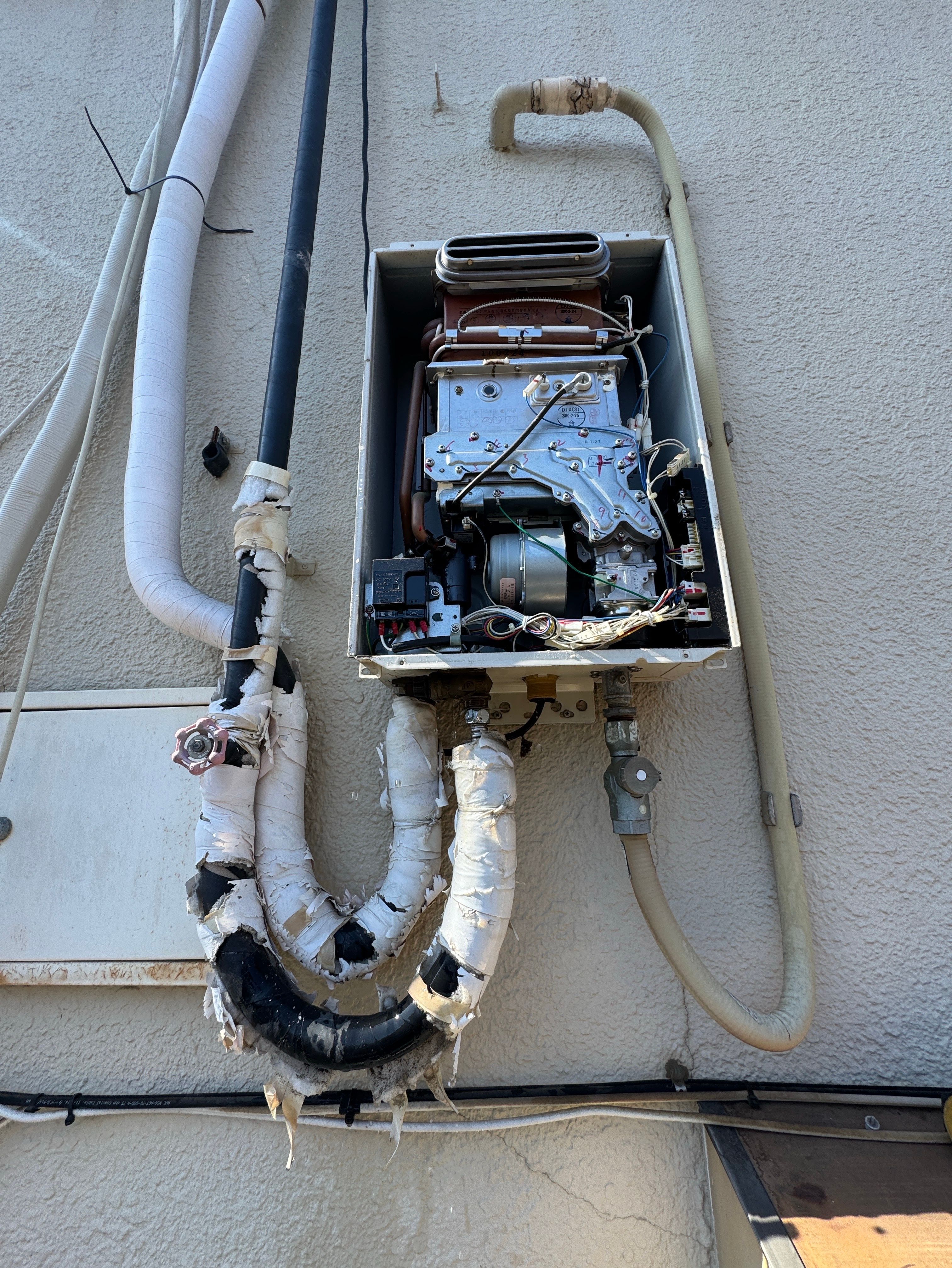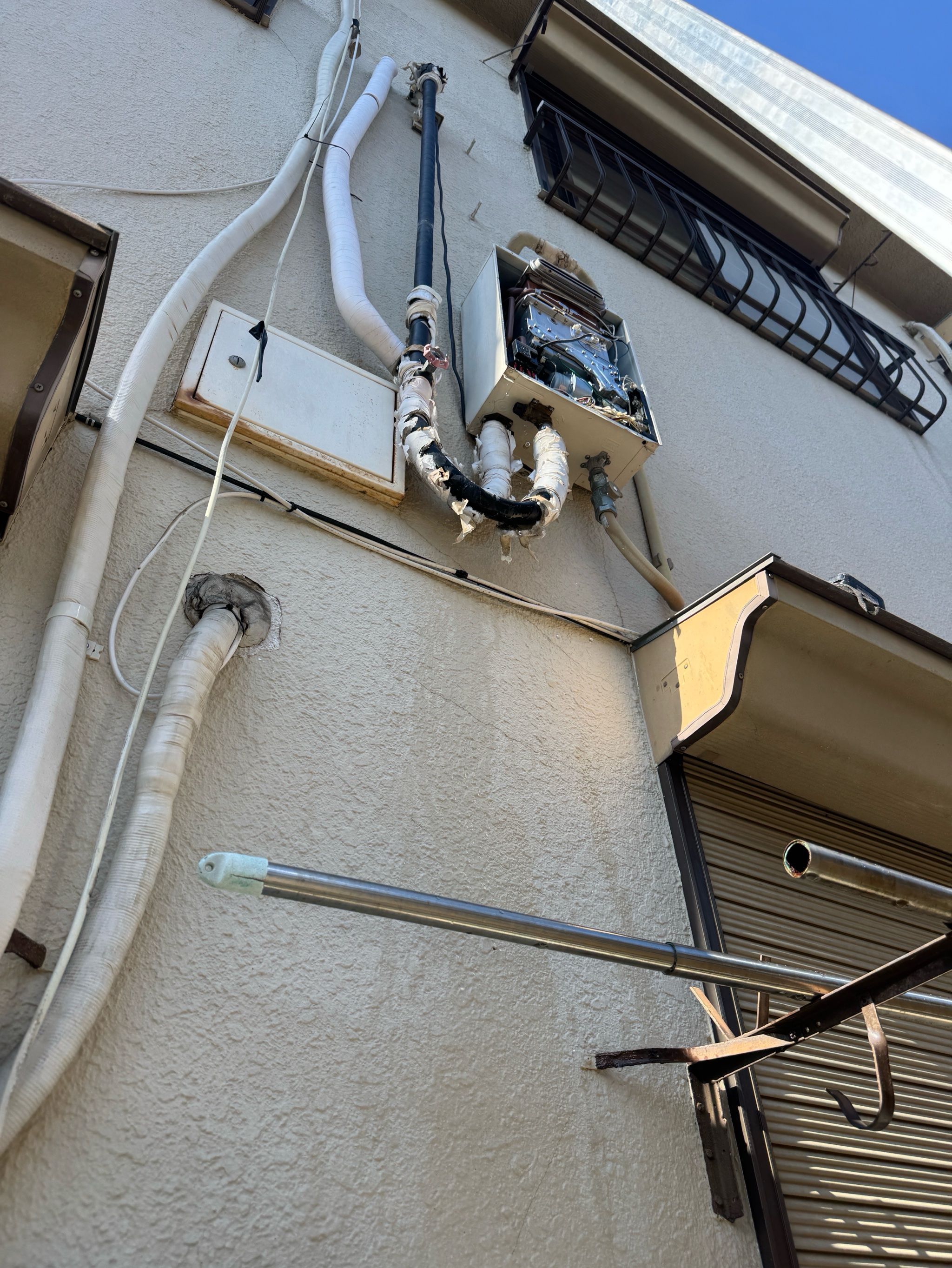 凍結からの給湯器本体水漏れ故障。故障から翌日に対応できてよかったです。NORITZさんからRinnaiさん変更給湯専用給湯器交換工事、高所作業。高所作業など対応してますのでお問い合わせください!