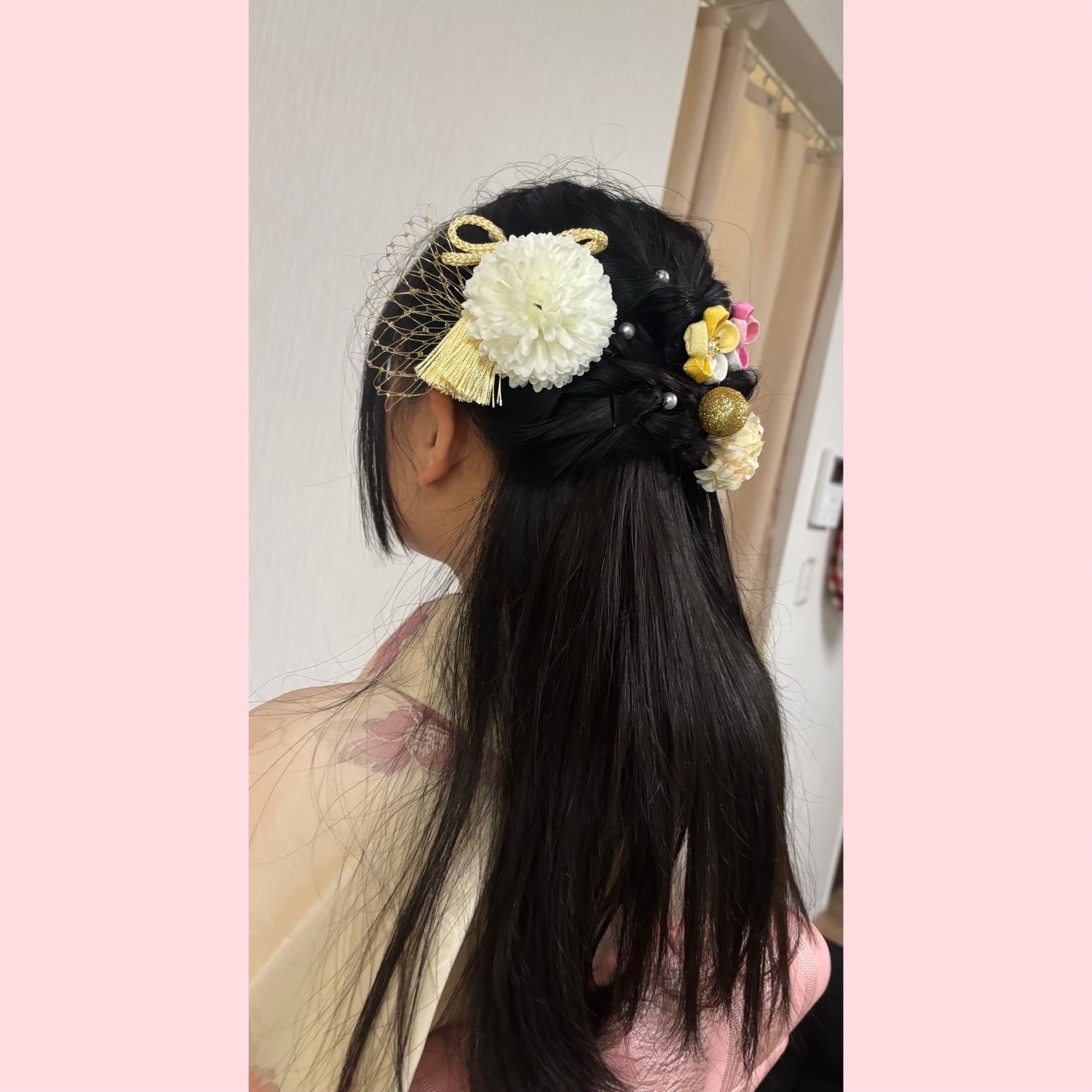 お着付けと簡単ヘアアレンジをいたしました。