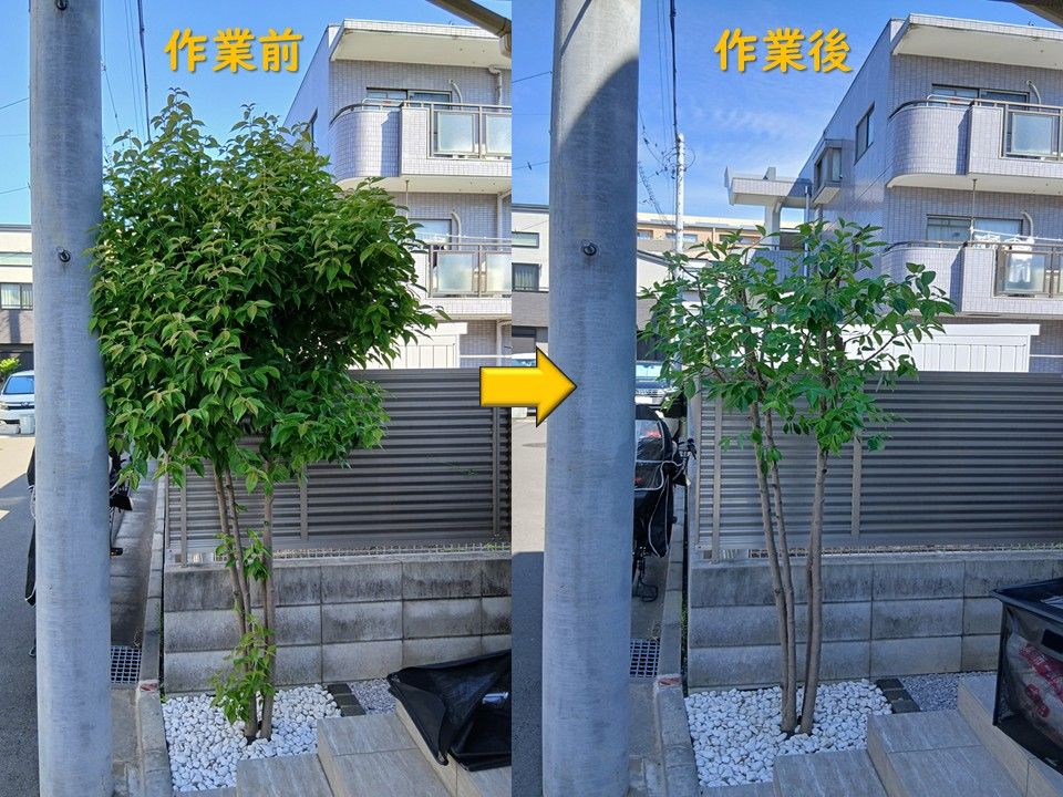 写真は実際の剪定の写真です。この他にも3本作業させていただきました。