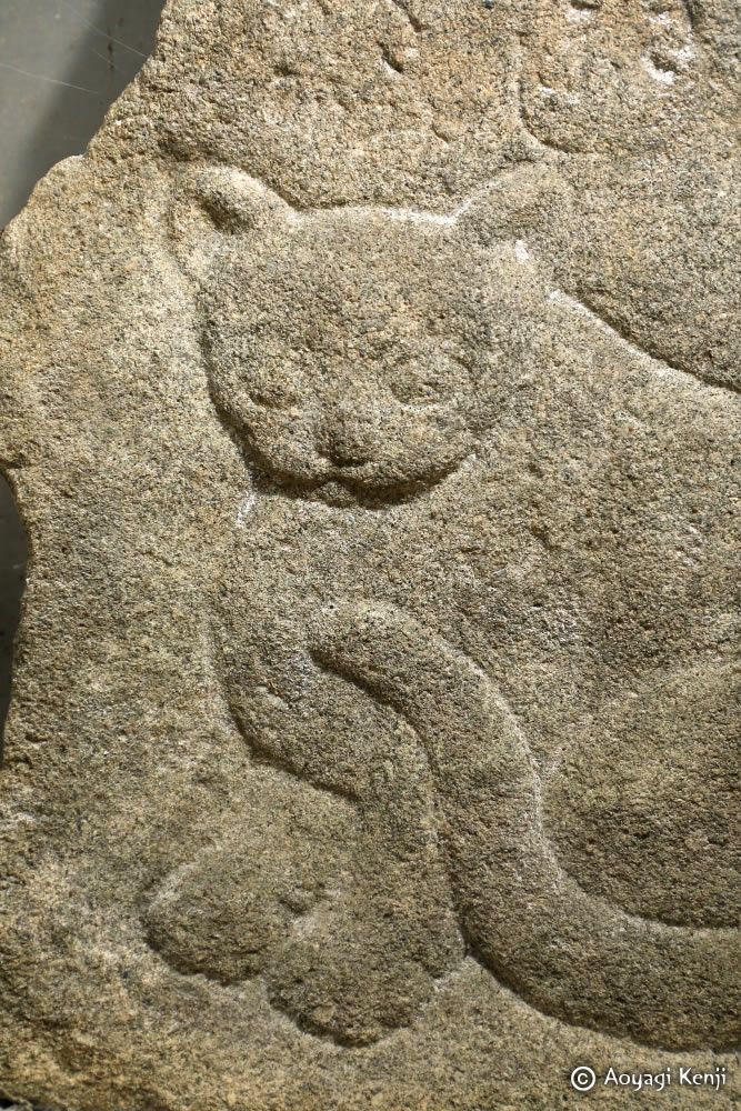 「今朝のゆき いきふじ花の かたみかな」 と彫られ、体は左に、顔は正面を向いた猫が座った像が浮き彫りにされています。 雪の日に死んだ「ふじ」という牝猫の供養のために建てられたのではないかという。